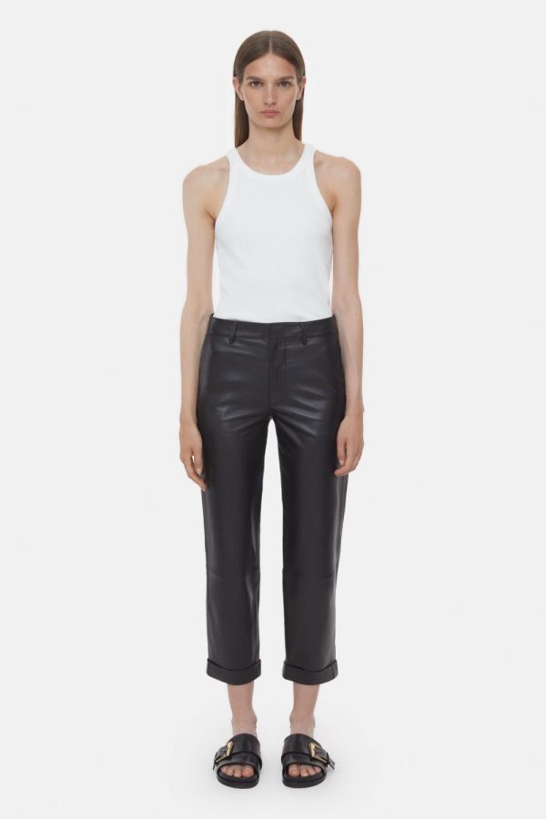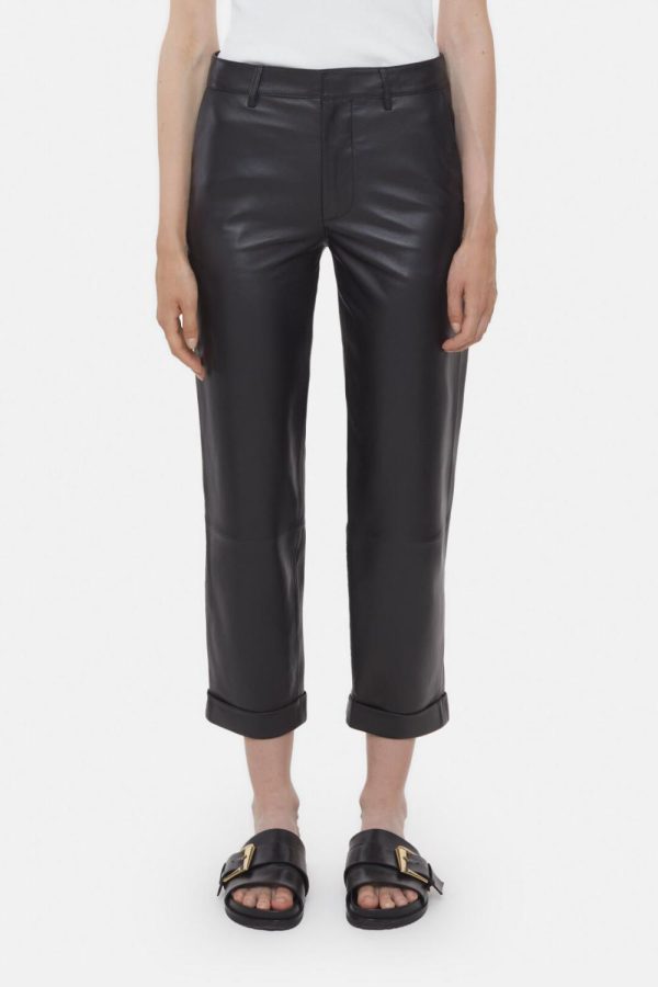 Aus supersoftem Nappaleder gefertigt: Style Auckley im Relaxed Fit mit hohem Bund, geradem Beinverlauf in verkürzter Länge sowie mit fixiertem Turn-up-Saum.