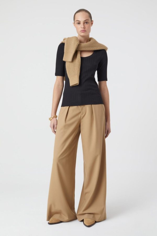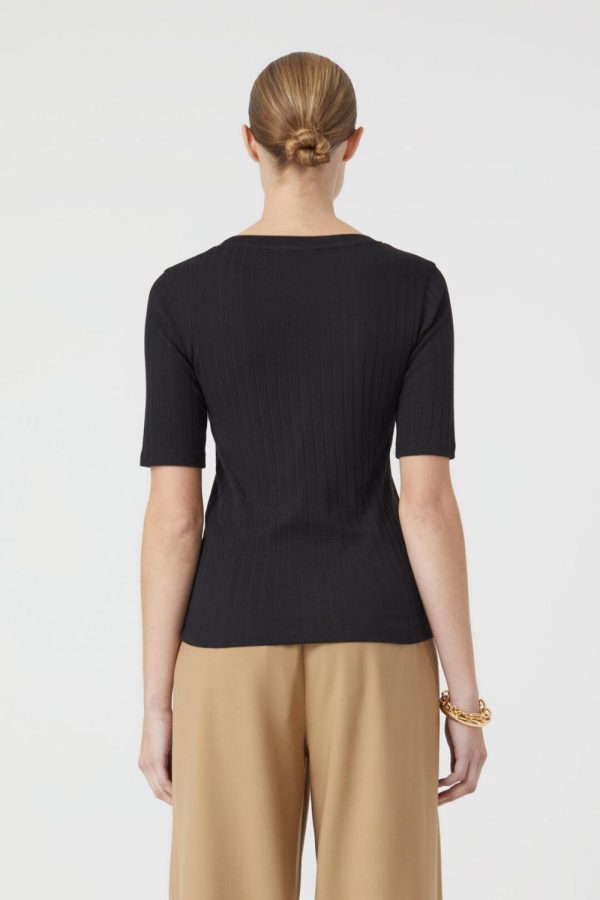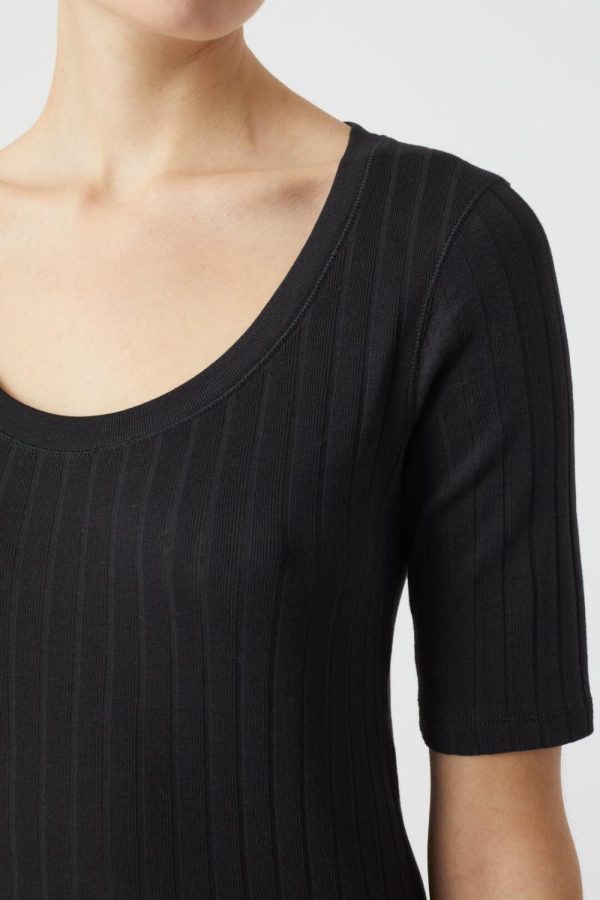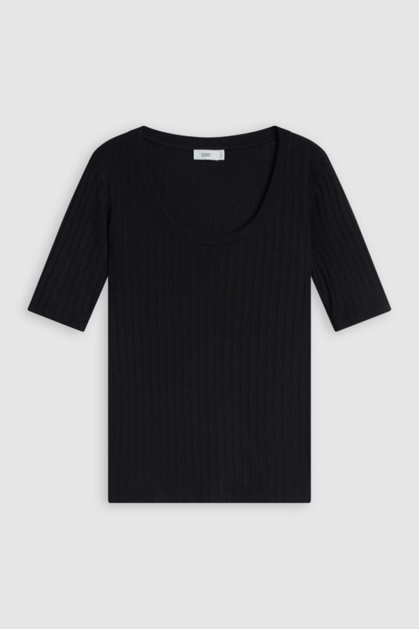 Basic Shirt mit weitem Ausschnitt, Rippenmuster und geradem Saumabschluss. Aus weichem Baumwolle-Modal-Mix in leicht transparenter Optik.