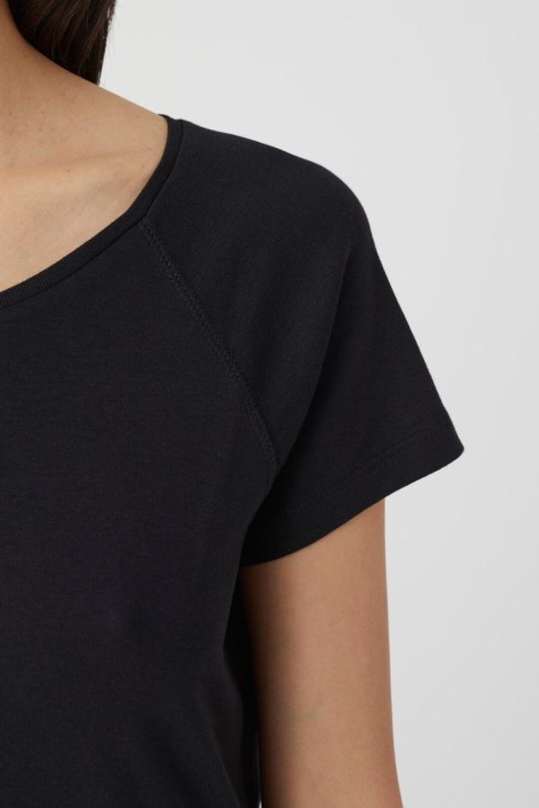 Basic T-Shirt mit Raglanärmeln aus leichtem und weichem Jersey aus Baumwolle und Modal. Cleane Verarbeitung mit Rundhalsausschnitt und gerundetem Saum.