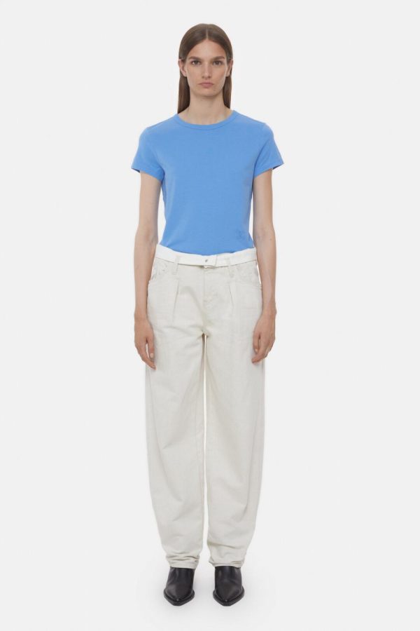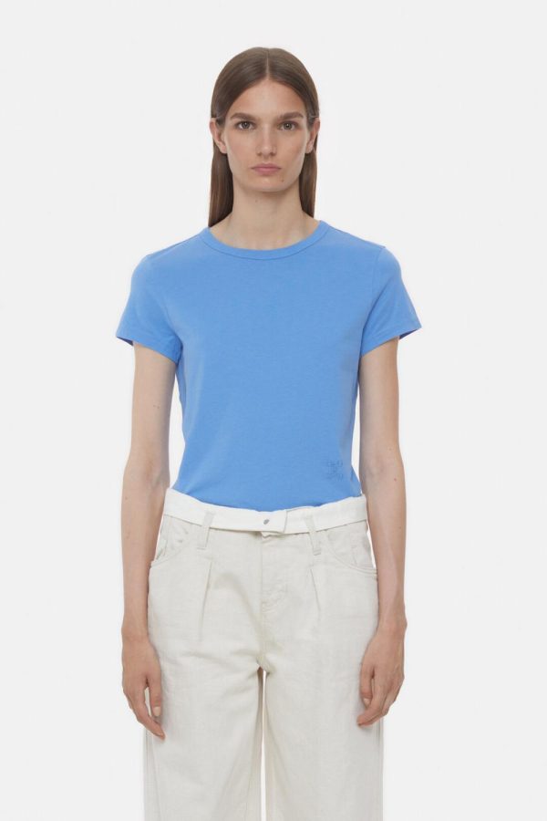 Unser Basic T-Shirt wurde aus reiner Bio-Baumwolle gefertigt. Es ist körpernah geschnitten und hat einen Rundhalsausschnitt, Raglanärmel und eine filigrane Stickerei.