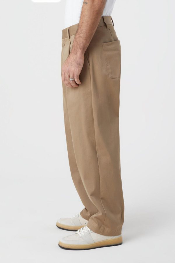 Cleaner Cotton Stretch Twill aus Italien mit kompaktem Griff – zugeschnitten und konfektioniert bei unserem Partnerbetrieb Panko. Der neue Style Blomberg Wide hat Bundfalten, seitliche Eingrifftaschen und aufgesetzte Gesäßtaschen. Innen aufwendig verarbeitet mit kontrastfarbenem Stoffbesatz.