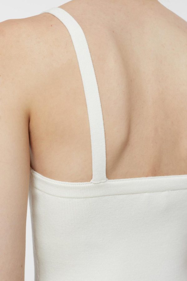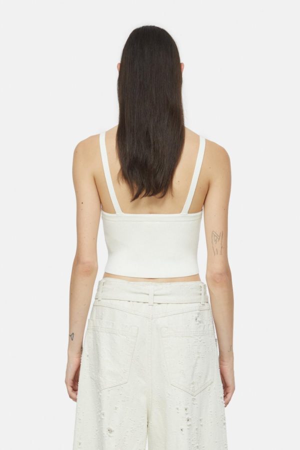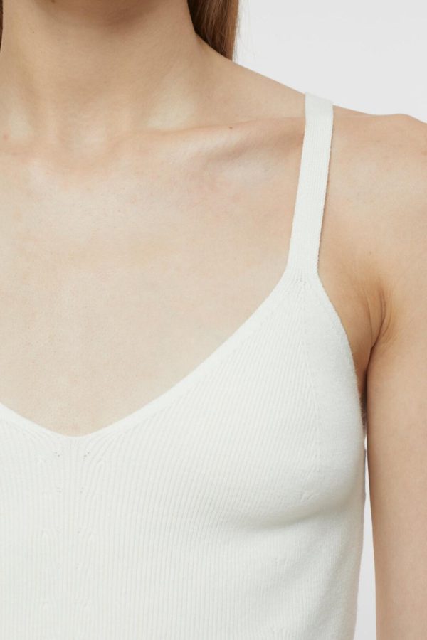 Die feine Rippstruktur verleiht dem Bra Top Elastizität. Gestrickt wurde es aus technischem italienischen Garn. Es hat schmale Träger und einen V-Ausschnitt.