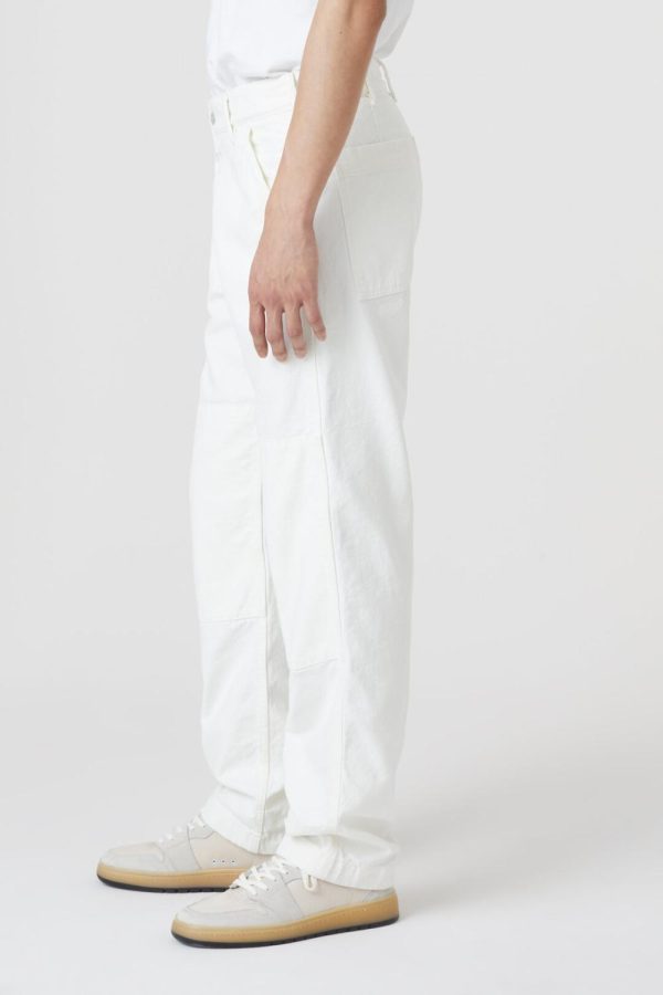 Der kräftige und kompakte Canvas mit trockener Haptik unterstreicht das Workwear-inspirierte Design: Hose im Relaxed Fit mit Knee-Patches und geradem Beinverlauf. Zip Fly mit Metallknopf in glänzender Optik.