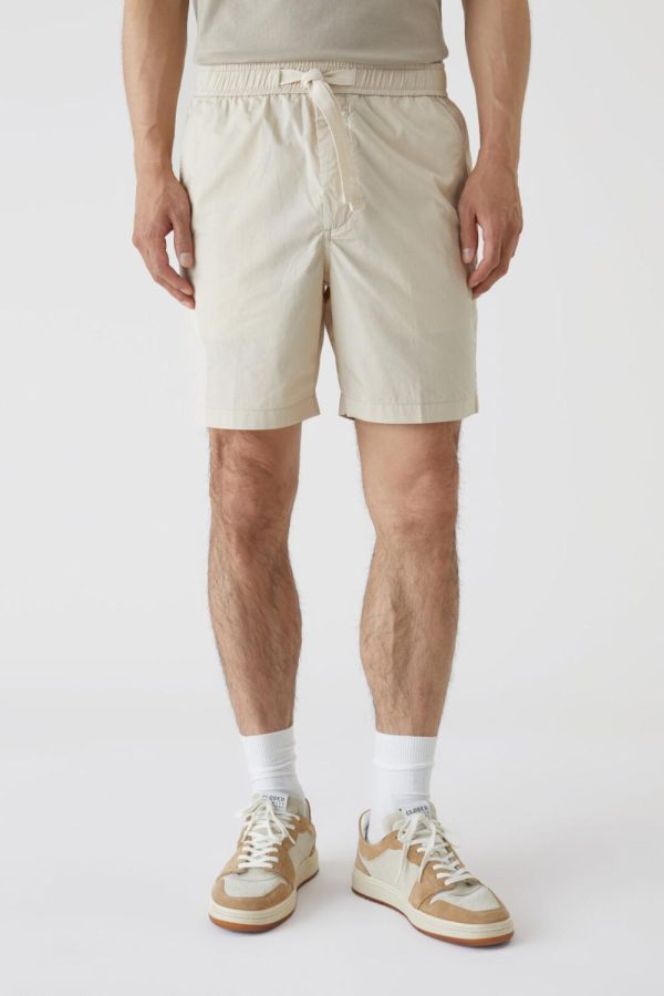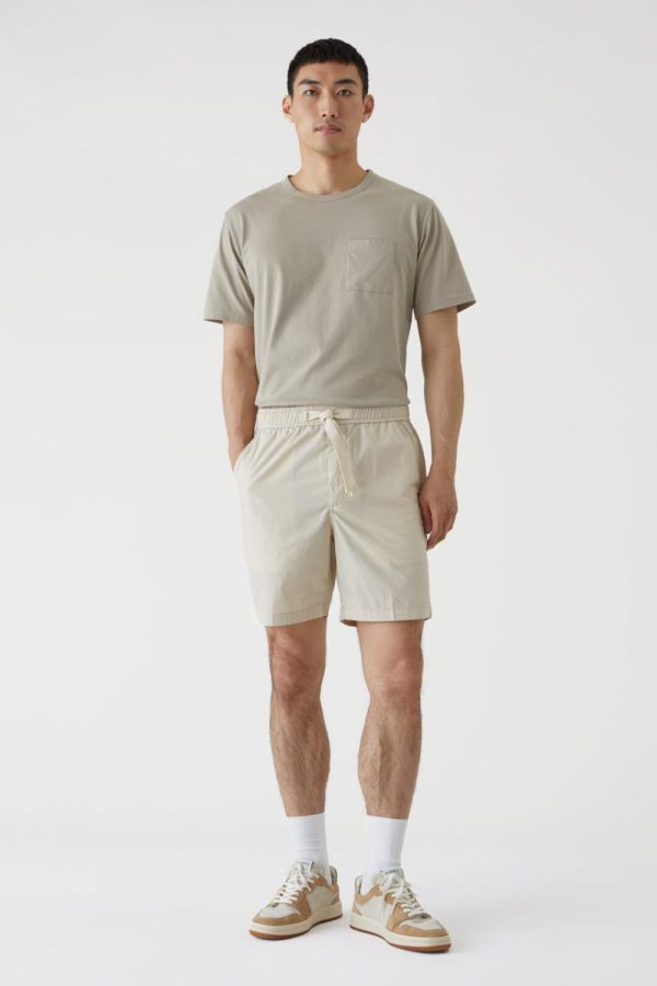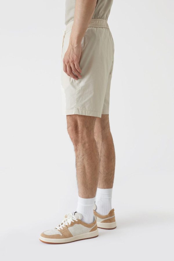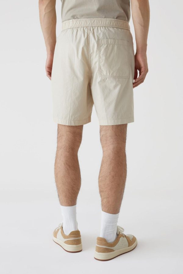 Aus sehr leichtem Bio-Baumwollstoff mit trockener Haptik: Shorts mit Stretchbund, Tunnelzug und Zip Fly. Seitliche Eingrifftaschen und aufgesetzte Tasche auf der Rückseite.