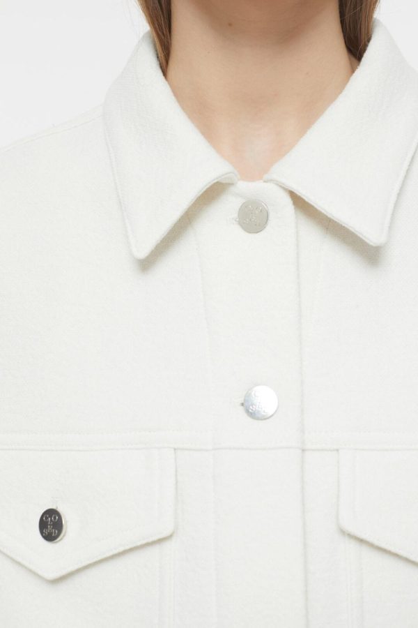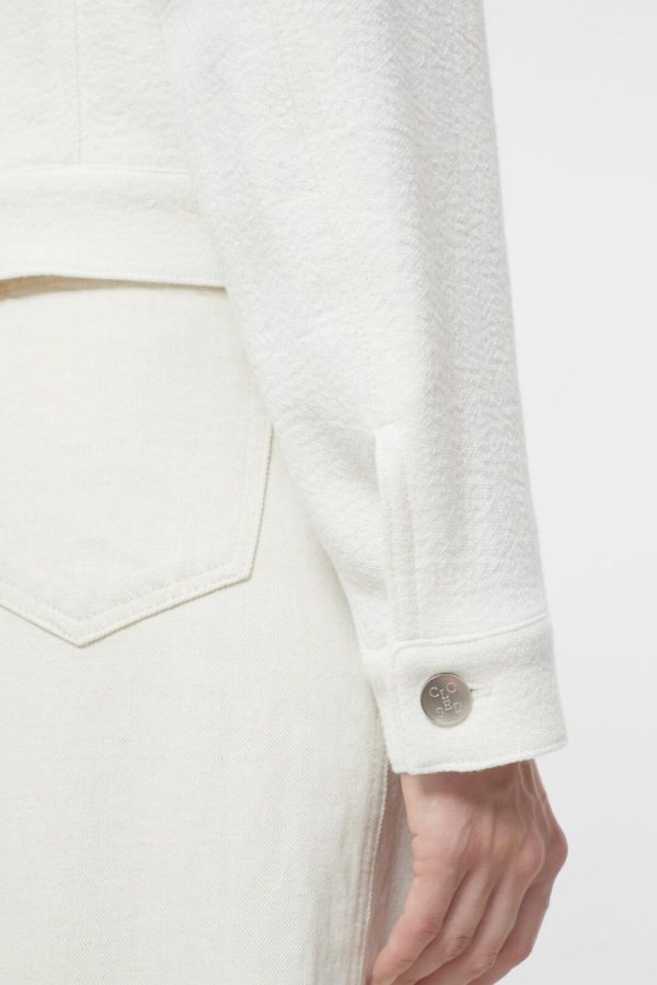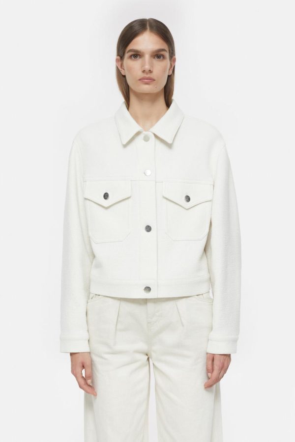 Diese Jacke aus italienischem Woll-Mix mit strukturierter Oberfläche und weicher Haptik wurde bei unserem Partnerbetrieb LTM Garments in Litauen gefertigt. Sie ist kurz geschnitten und hat geknöpfte Brusttaschen und Manschetten.