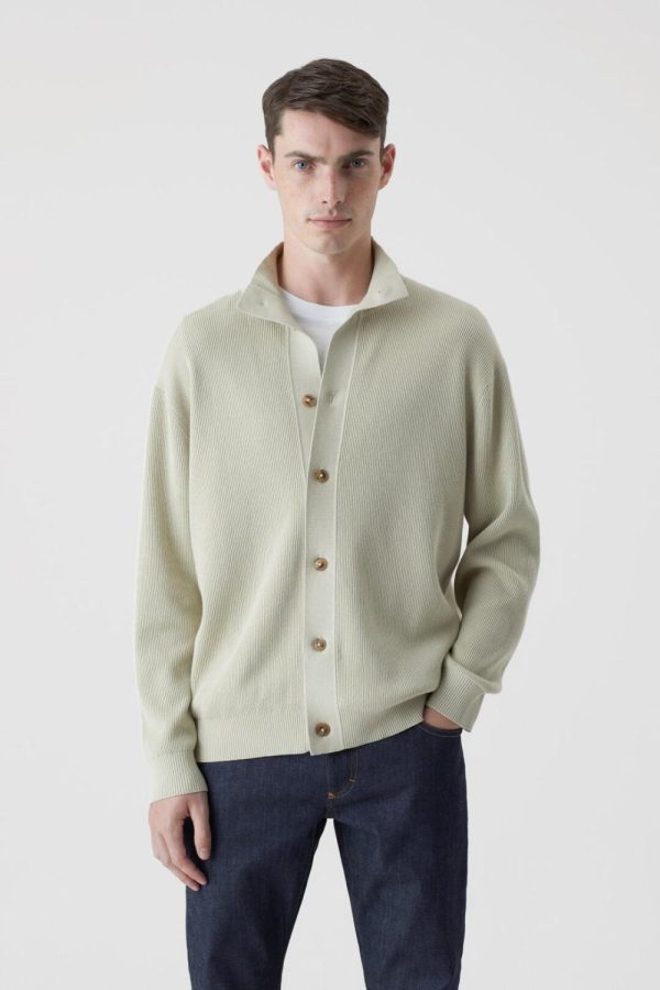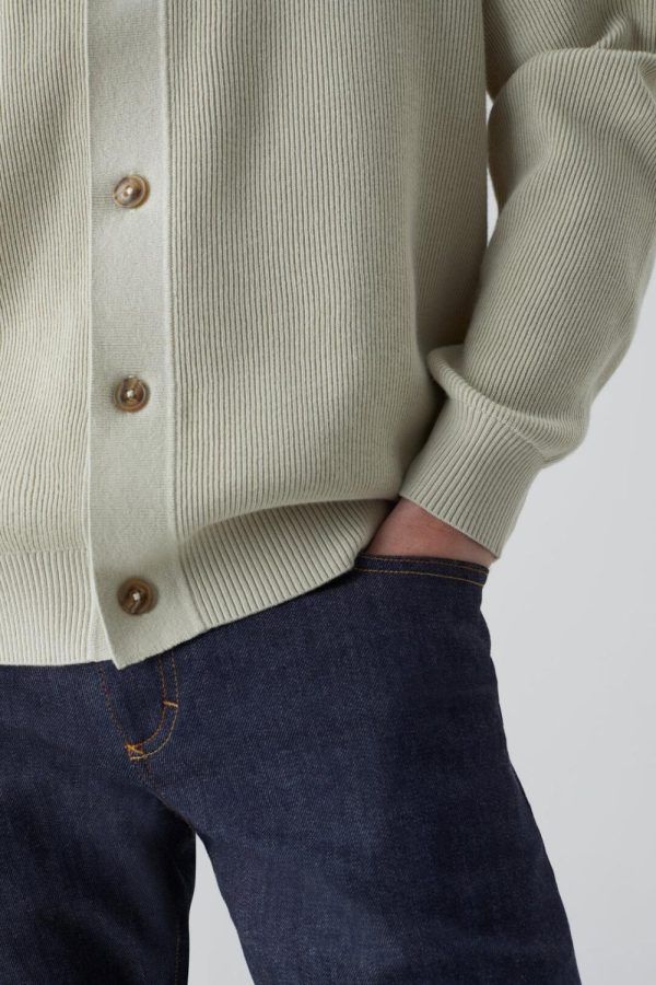 Aus weichem Baumwollstrick mit Wolle und Cashmere: Fein gerippter Cardigan mit glatt gestrickter Knopfleiste, Knöpfen in Horn-Optik und Bündchen.
