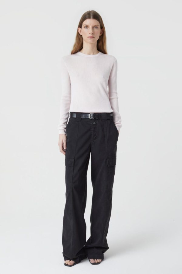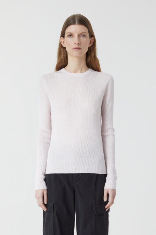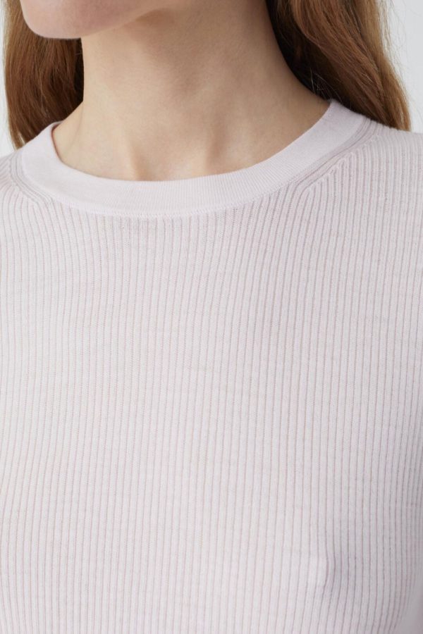 Geripptes Longsleeve im Slim Fit aus weicher Bio-Wolle mit Kontrast-Details auf der Rückseite. Leicht transparenter Feinstrick mit Rundhalsausschnitt und geradem Saumabschluss.