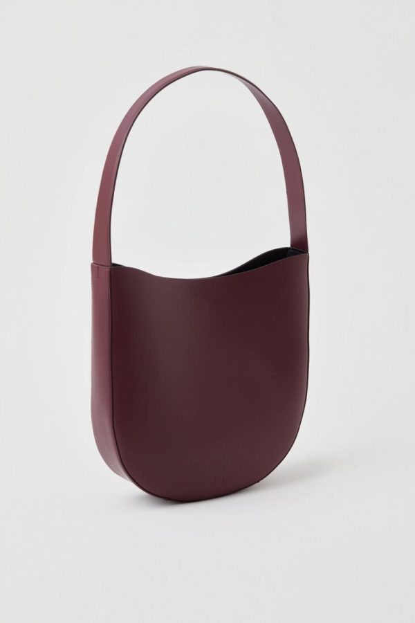 Unsere Half Round Bag in cleaner Optik mit breitem Riemen. Gefertigt bei unserem Partnerbetrieb Daro’s in Portugal aus großen Lederzuschnitten mit mehrfach handgefärbten und polierten Kanten. Kann per Druckknopf verschlossen werden. Mit Monogramm-Prägung vorn und einem Steckfach innen.