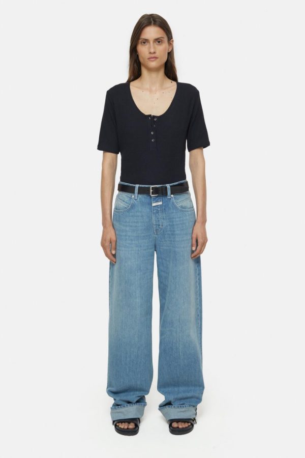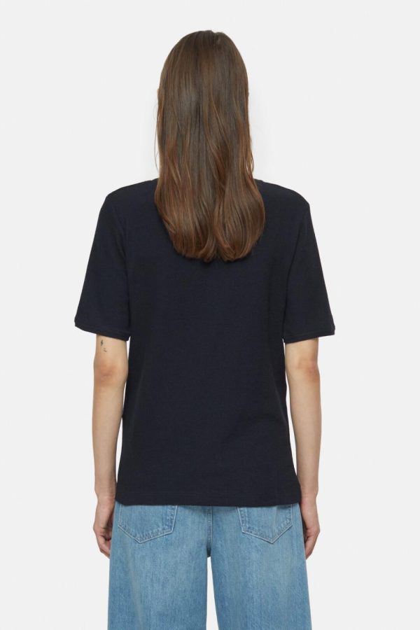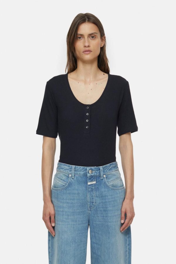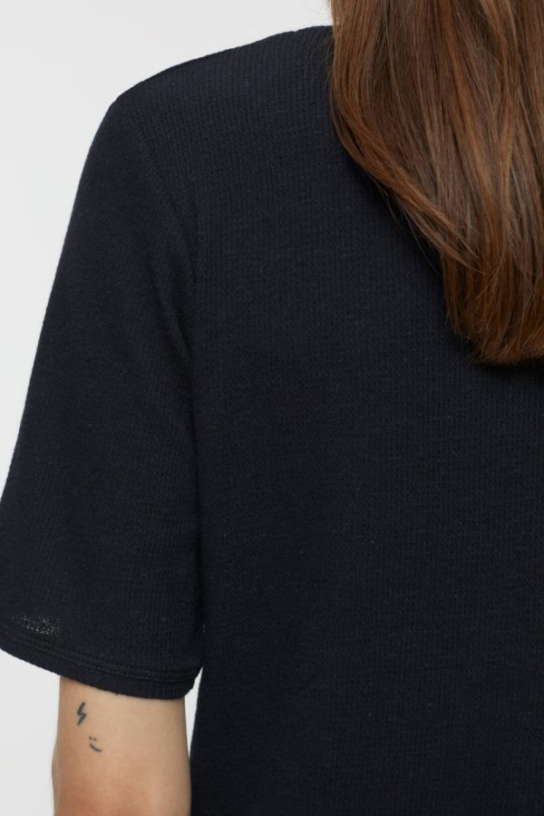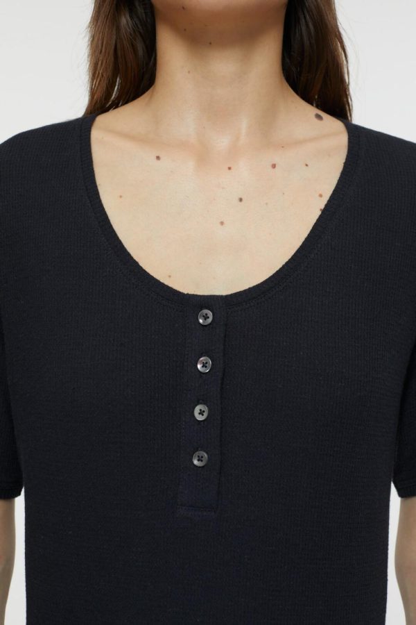 Aus weichem und leichtem Jersey mit Waffelstruktur: T-Shirt mit Rundhalsausschnitt, Knopfleiste und gerade geschnittenem Saum.