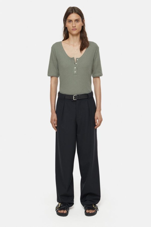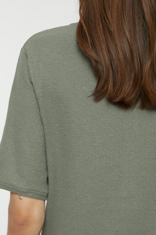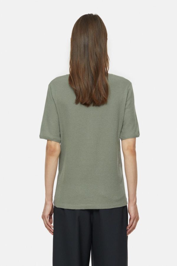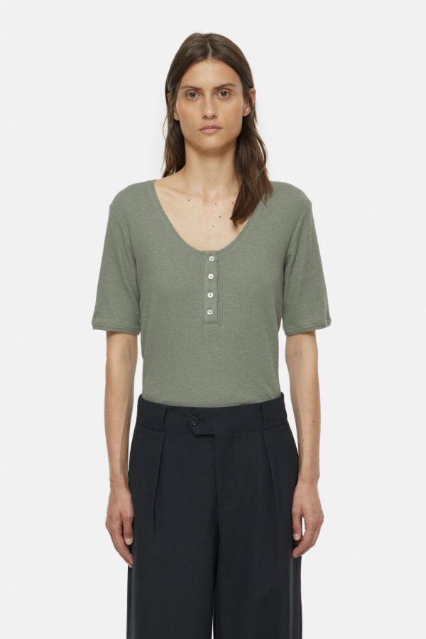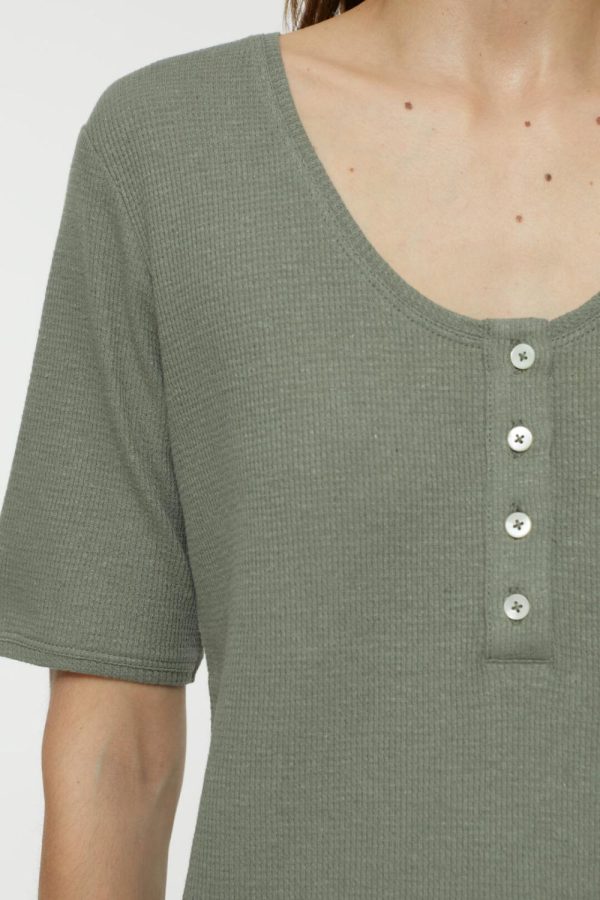 Aus weichem und leichtem Jersey mit Waffelstruktur: T-Shirt mit Rundhalsausschnitt, Knopfleiste und gerade geschnittenem Saum.