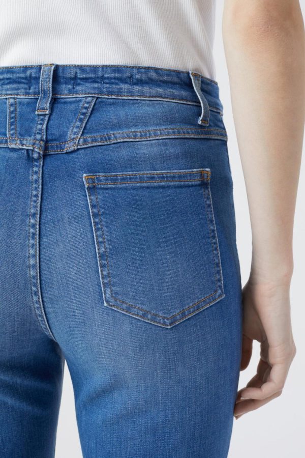 New Slim Fit Hi-Sun mit hohem Bund, ausgestellter Beinform und Button Fly. Teil unserer nachhaltigen Denim-Linie A BETTER BLUE.Stretch-GradPower StretchYoga-Leggings vergessen? Keine Ausrede an Tagen, an denen man Power-Stretch-Denim trägt!