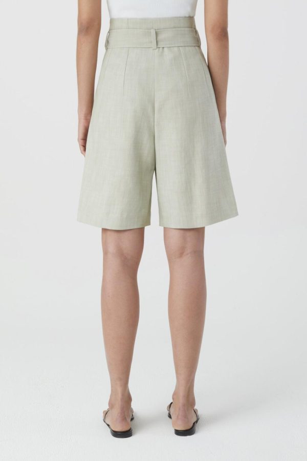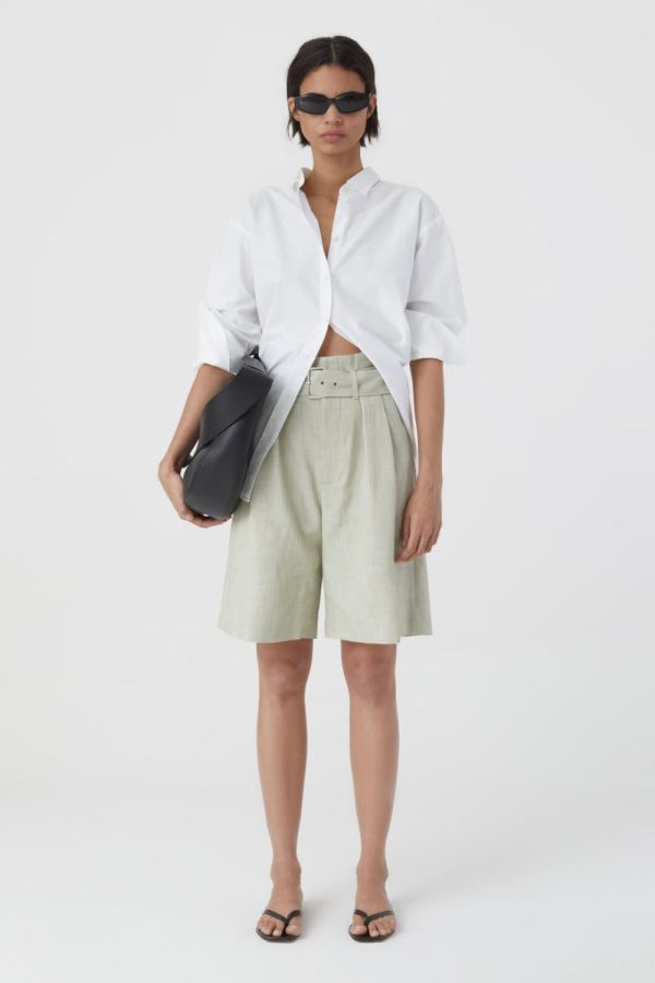 Aus weich fallendem und strukturiertem Viskose-Mix mit Elasthan-Anteil – zugeschnitten und konfektioniert bei unserem Partnerbetrieb Texdata in Rumänien: High Waist Shorts mit Bundfalten und Gürtel. Im Regular Fit mit seitlichen Eingrifftaschen.