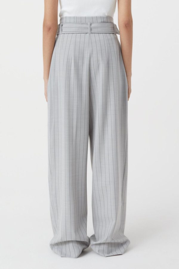 Gefertigt aus garngefärbter, gestreifter Qualität mit Schurwolle und Elasthan in Melange-Optik: Style Imogen im Wide Fit mit Taillengürtel, Schließe in Horn-Optik, Bundfalten, seitlichen Eingrifftaschen und Leistentaschen auf der Rückseite.
