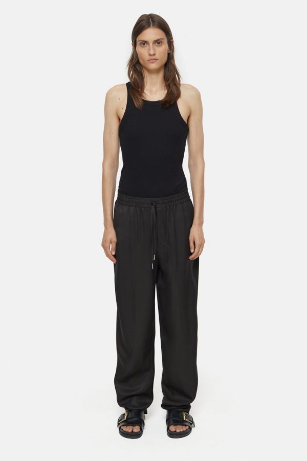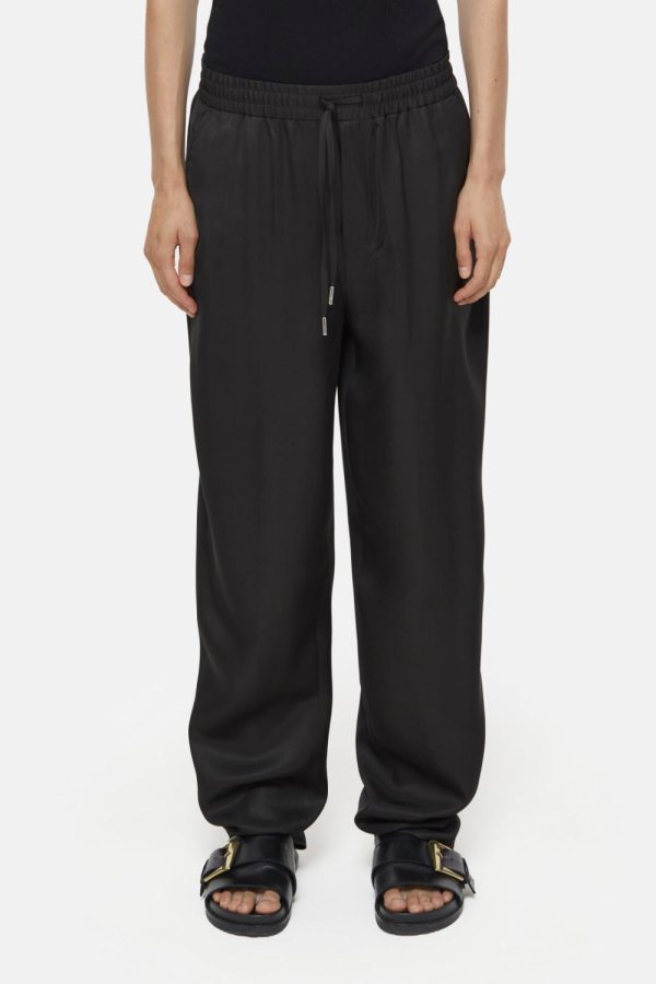 New Relaxed Fit aus fließendem Twill mit glattem Griff in cleaner und leicht glänzender Optik. Mit Stretchbund, Tunnelzug und seitlichen Eingrifftaschen.