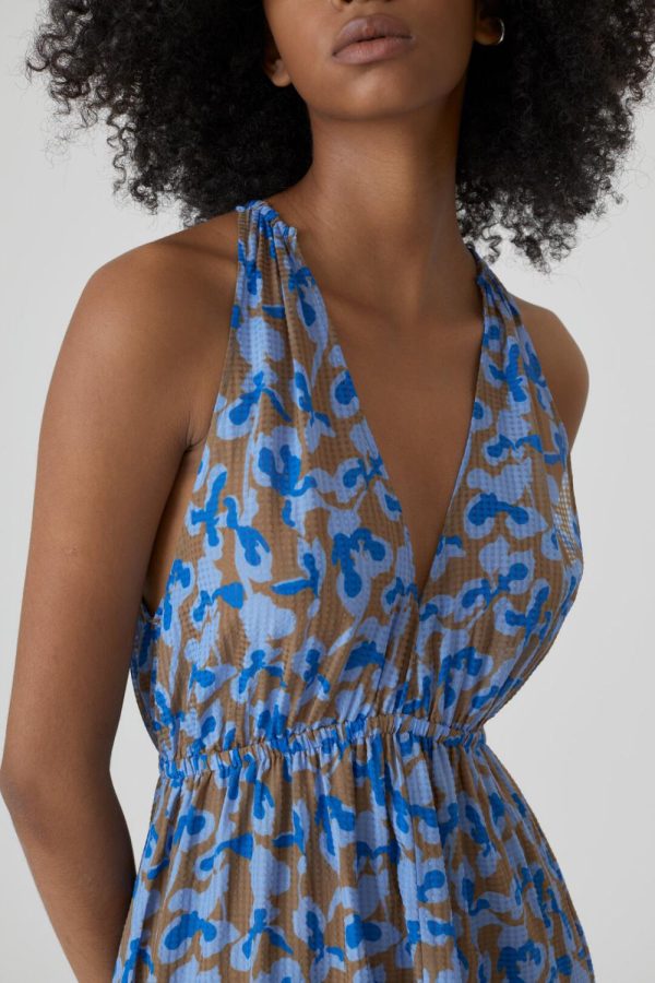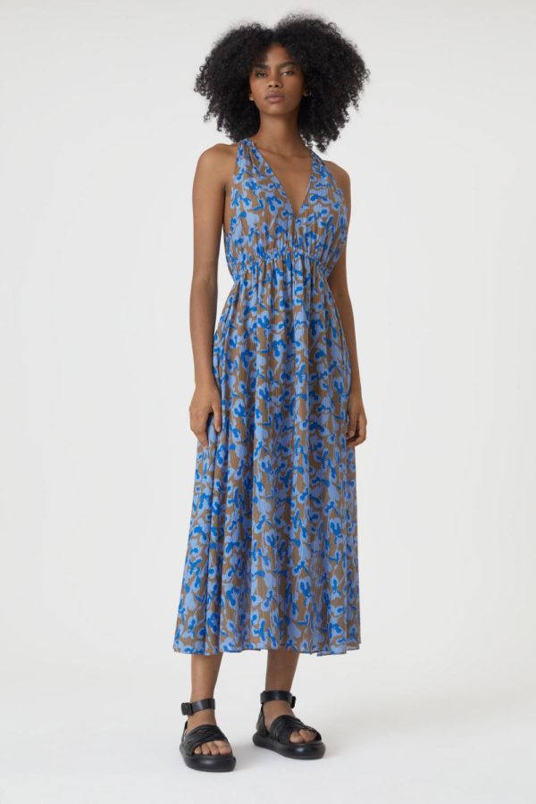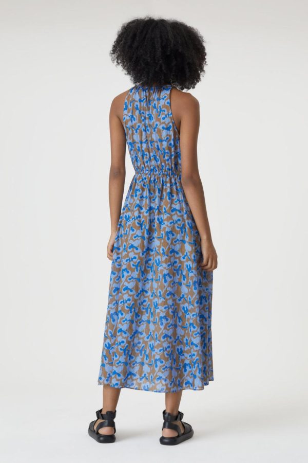 Trägerkleid mit Raffungen, hergestellt aus gehämmerter Viskose mit texturierter Oberfläche und abstraktem, Closed-exklusivem Print. Weich fallender Slim Fit mit softer Haptik, verkürztem Viskosefutter und geradem Saumabschluss.
