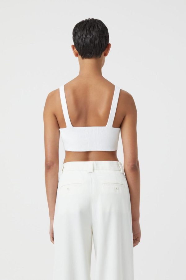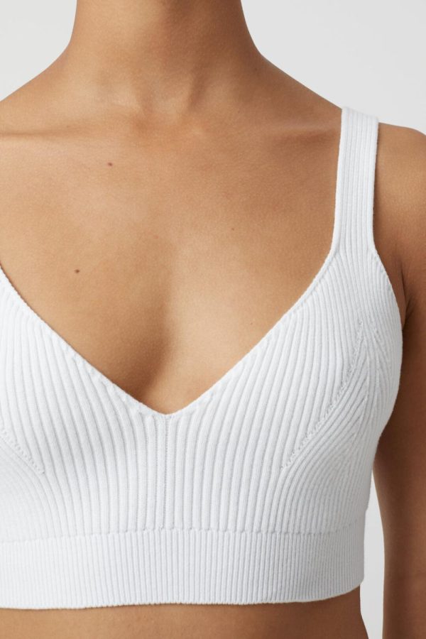 Top im elastischen Rippstrick aus reiner Bio-Baumwolle. Mit V-Ausschnitt, breiten Trägern und feiner geripptem Bündchen.