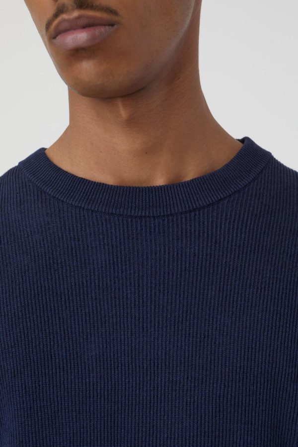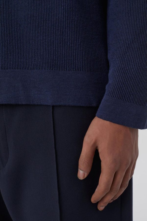 Pullover im Rippstrick aus Baumwolle und Leinen in Bio-Qualität. Feinstrick mit leicht überschnittenen Schultern, Seitenschlitzen und fein gerippten Abschlüssen an Ärmeln und Saum.