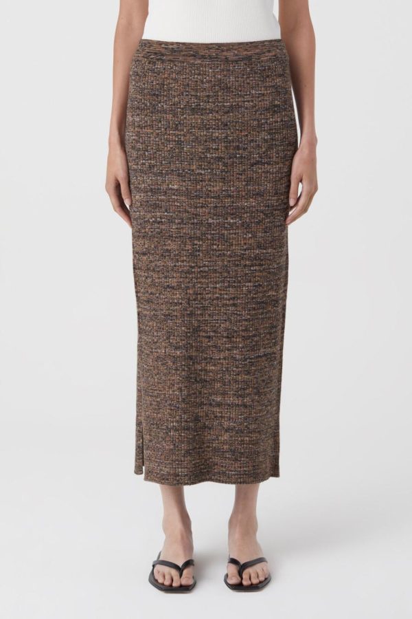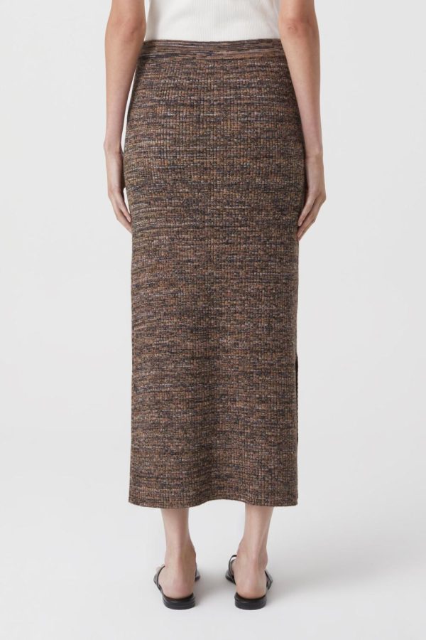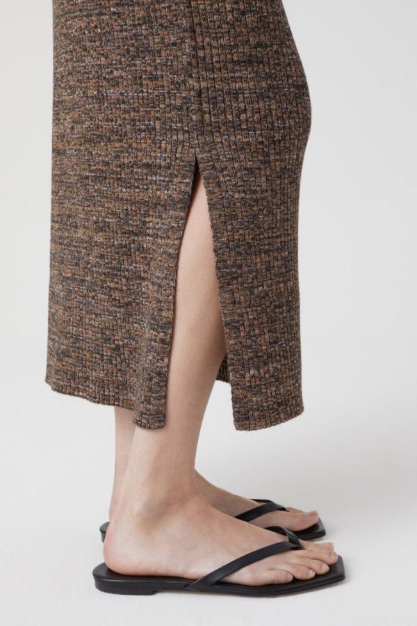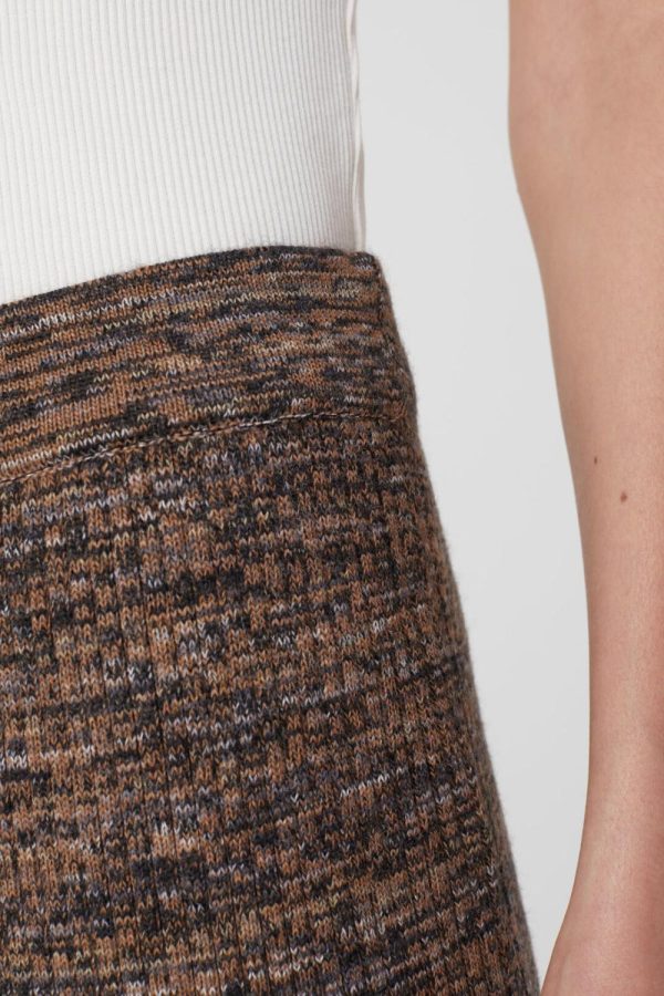 Dieser körpernah geschnittene Pencil Skirt mit hohem Bund besteht aus italienischem Garn mit mehrfarbigem Mouliné-Effekt. Hierbei werden beim Stricken der Artikel drei unterschiedlich farbige Garne eingesetzt, sodass zufällige Effekte und Muster entstehen. Diese Vorgehensweise macht jedes Teil zum Unikat. Die breit gerippte Struktur verleiht dem Rock Elastizität.