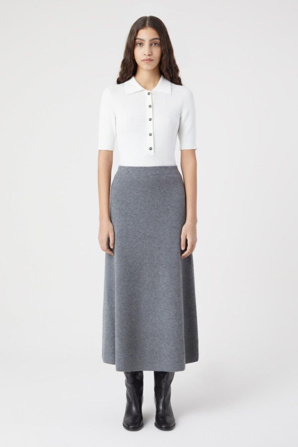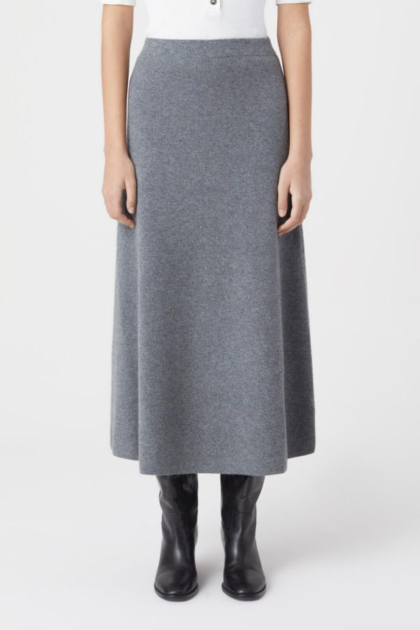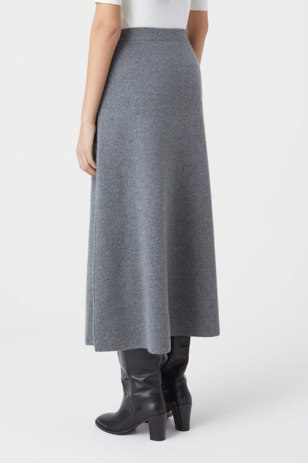 In A-Linie geschnittener Rock gestrickt aus hochwertigem Wolle-Cashmere-Mix mit weicher Haptik, cleaner Oberflächenstruktur und leichtem Stretch-Anteil. Mit hohem Taillenbund und geradem Saumabschluss.