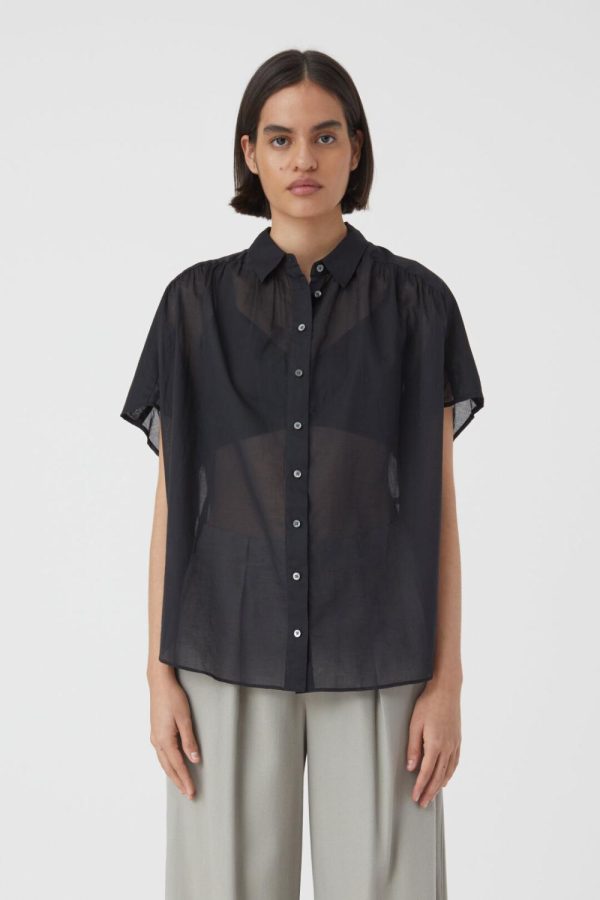 Relaxed Fit aus sehr leichtem und weichem Baumwoll-Voile in dezent transparenter Optik. Mit durchgehend überschnittener Schulter, feinen Falten vorn und auf der Rückseite sowie mit tonigen Knöpfen.