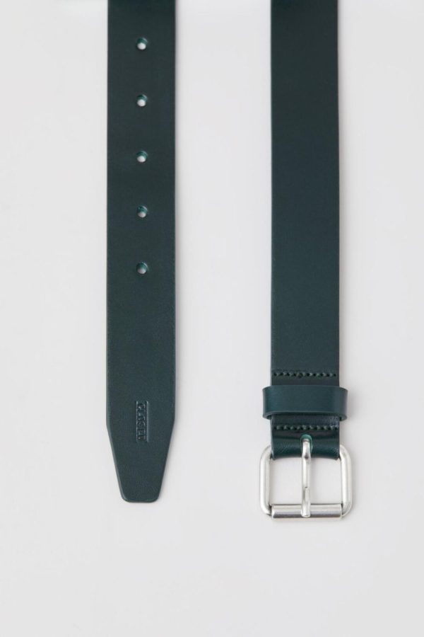 Gefertigt aus pflanzlich gegerbtem Leder mit mehrfach handgefärbten und polierten Schnittkanten: Gürtel mit C-Prägung und Dornschließe aus Metall.