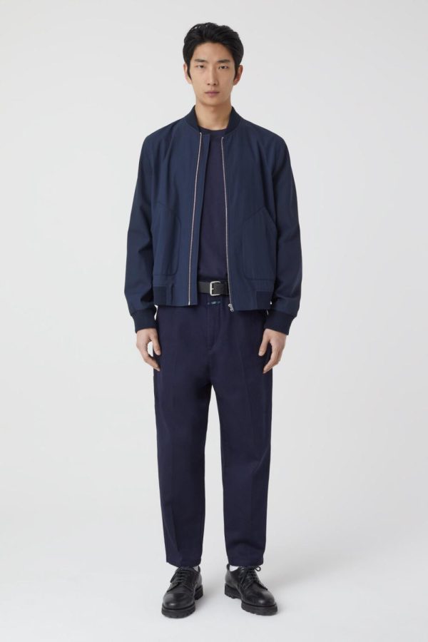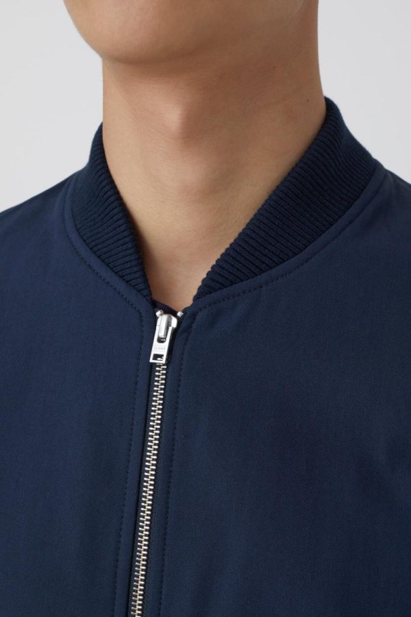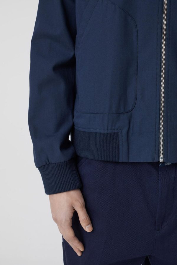 Aus sehr leichtem italienischem Baumwoll-Twill in cleaner Optik – zugeschnitten und konfektioniert bei unserem Partnerbetrieb Texdata: Blouson mit Rippkragen und Rippbündchen sowie aufgesetzter Fronttasche. Kontrastfarbenes Futter aus garngefärbtem Stoff in gestreifter Optik mit Innentasche.
