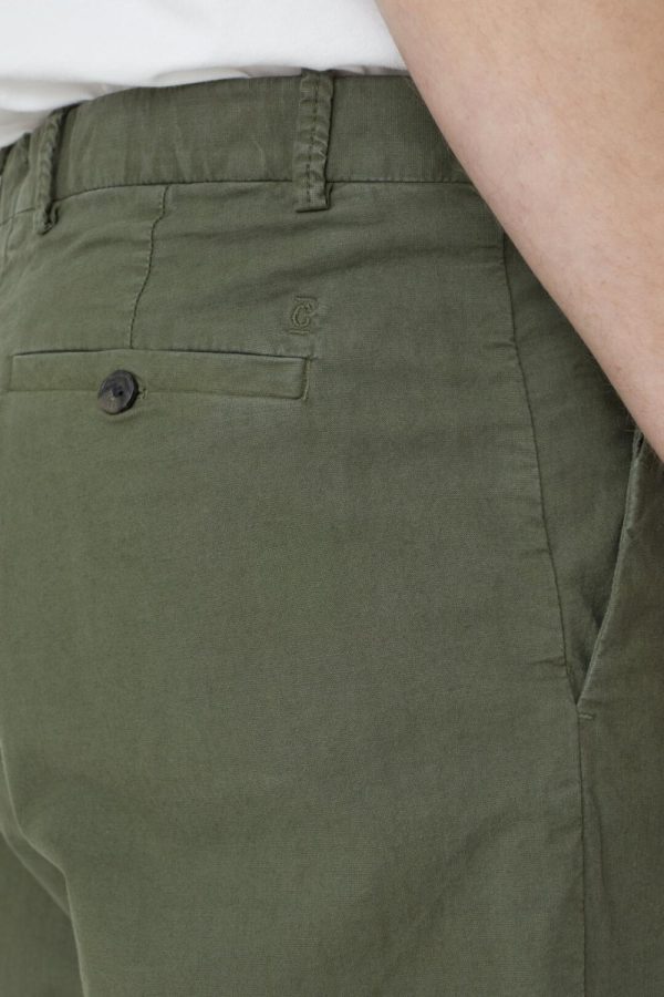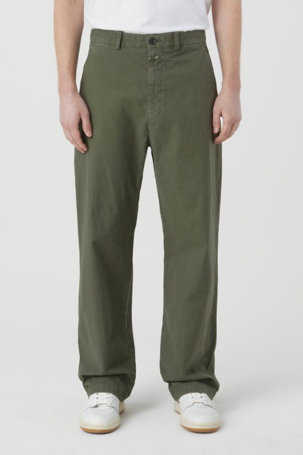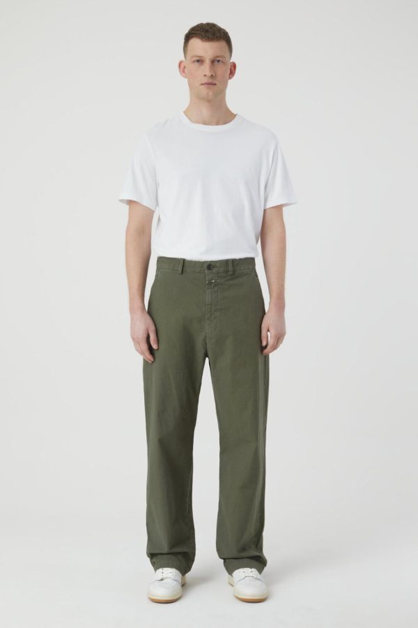 Style Livington Wide im Loose Fit mit geradem Beinverlauf aus italienischem Baumwollstoff mit Stretch-Anteil, deutlicher Struktur und tonigen Details. Für eine dezente Used-Optik wurde die fertige Hose gefärbt und gewaschen.