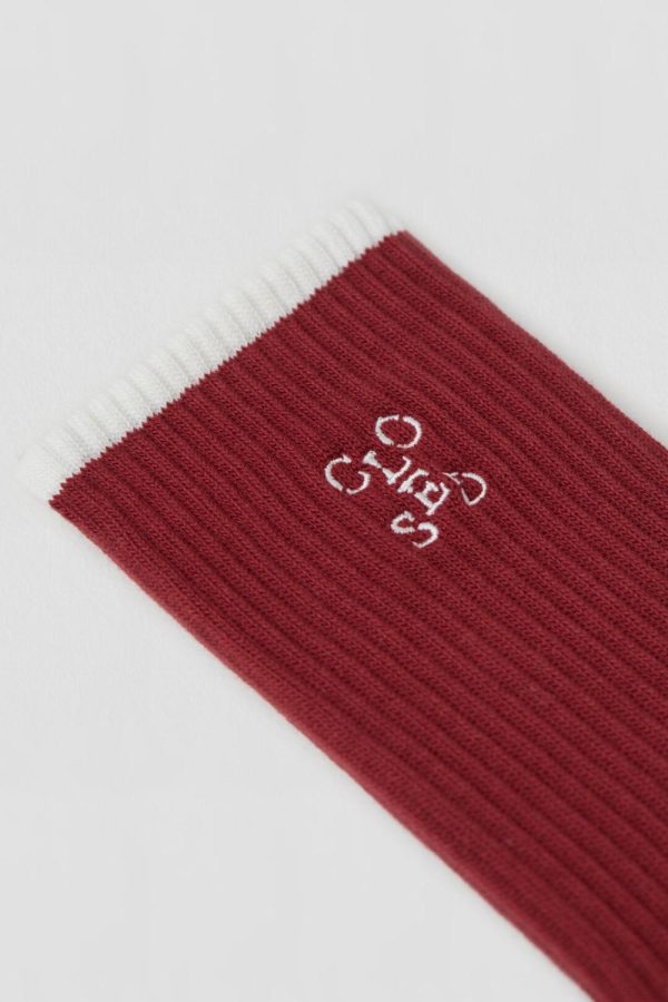 Die sportlichen Socken wurden aus softem Bio-Baumwoll-Mix gefertigt. Sie haben eine Kontrast-Kante, gerippte Details und unser gesticktes Monogramm.