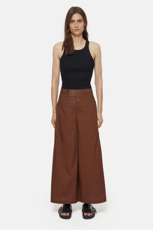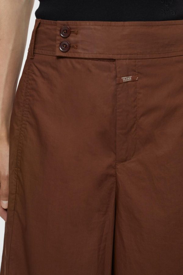 New Wide Fit mit verkürzter Hosenlänge. Die Luna aus Popeline – sehr leichter Stoff aus reiner Bio-Baumwolle mit kühler Haptik. Mit breitem Bund und seitlich versetzten Knöpfen, Fly-Label und Eingrifftaschen im Nahtverlauf. Geknöpfte Tasche auf der Rückseite.