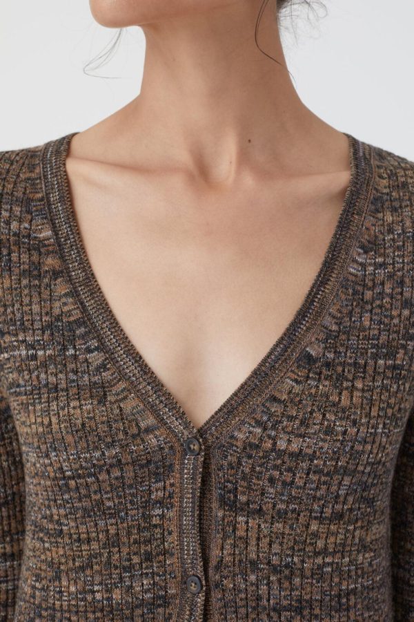 Die gerippte Struktur verleiht dem Cardigan im Slim Fit Elastizität. Gefertigt aus italienischem Garn mit mehrfarbigem Mouliné-Effekt. Hierbei werden beim Stricken der Artikel drei unterschiedlich farbige Garne eingesetzt, sodass zufällige Effekte und Muster entstehen. So wird jedes Teil zum Unikat.