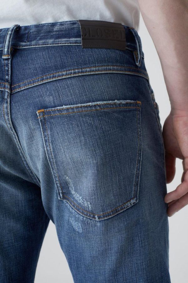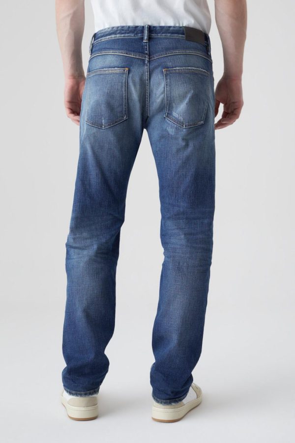 – Feels like: Mittelschwerer Denim (11 oz.) mit etwas weicherer Haptik und maximaler Bewegungsfreiheit (Stretch-Grad 3 von 3: Intense Stretch Denim)