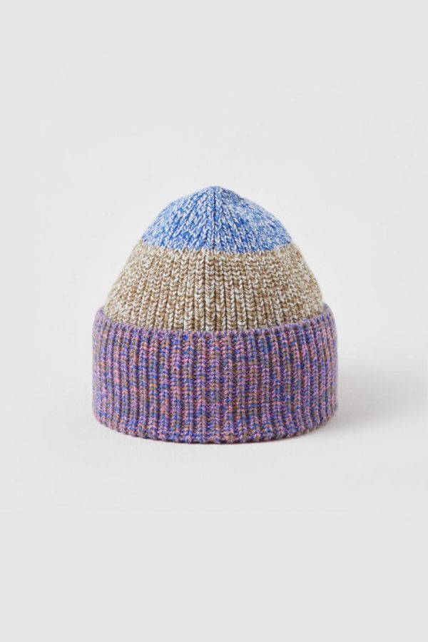 Beanie mit Blockstreifen aus weichem Mouliné-Garn – gesponnen aus reiner Bio-Baumwolle, gestrickt im Fisherman’s Rib.