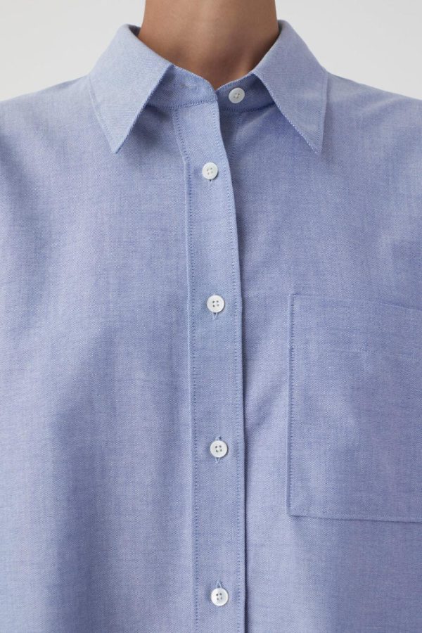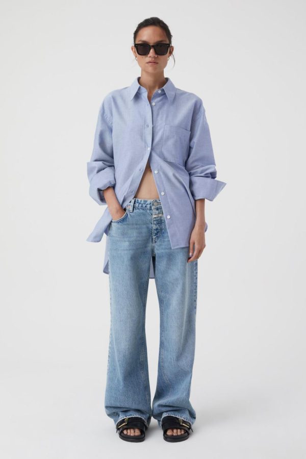 Diese Oxford-Hemdbluse mit lockerem Schnitt wurde aus reiner Bio-Baumwolle in Portugal gefertigt und hat eine Brusttasche, eine durchgehende Knopfleiste und einen gerundeten Saum. Auf der Rückseite ist sie länger geschnitten.