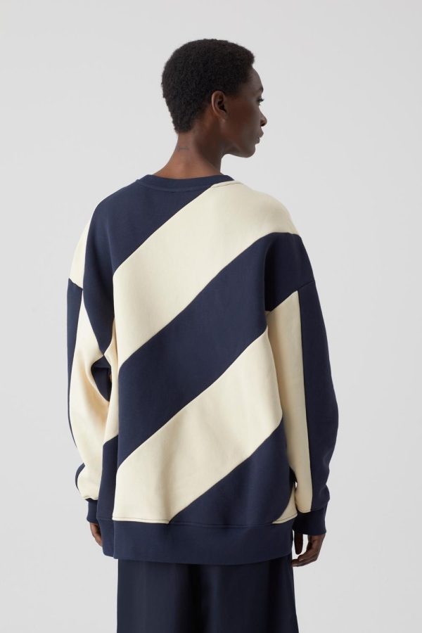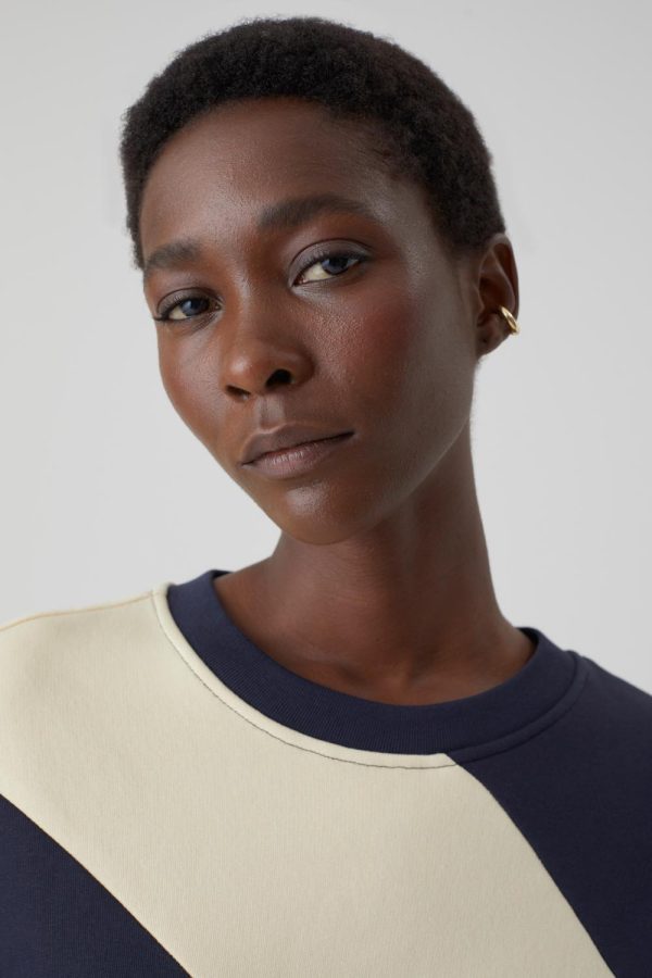 Oversized Crewneck mit zweifarbigem Patchwork und gesticktem C auf der Vorderseite. Aus cleaner Qualität mit sehr softem Griff und weich gebürsteter Innenseite. Bündchen an Ausschnitt, Ärmel- und Saumabschluss.
