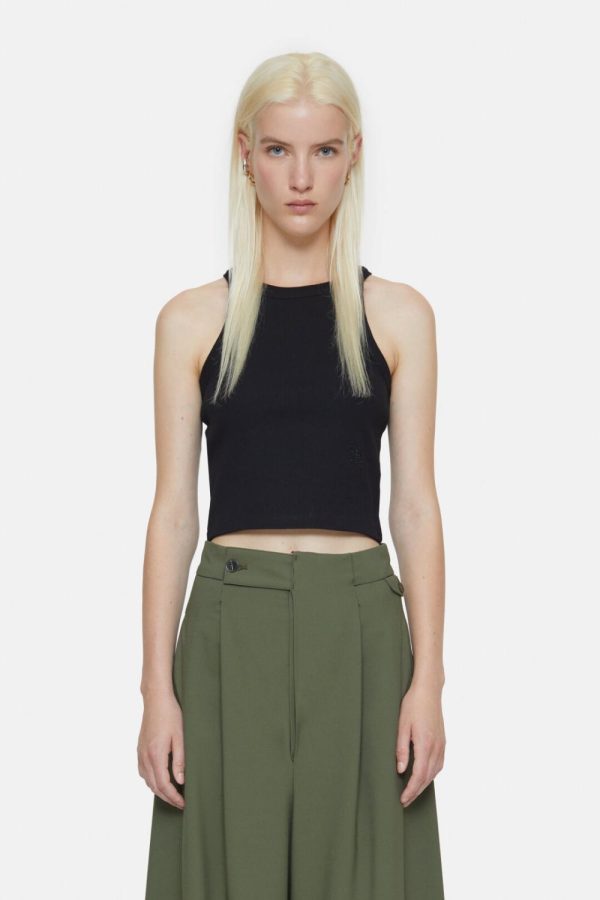 Unser kurzes Racer Top im Rippstrick wurde aus weicher Bio-Baumwolle und Elasthan gefertigt. Der lockere Schnitt wird durch unsere Logo-Stickerei abgerundet.