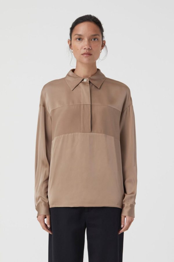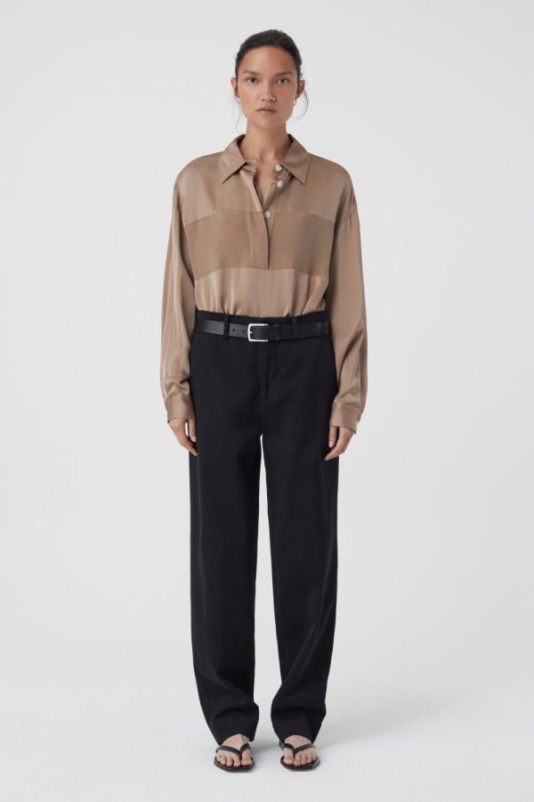 Hergestellt aus reiner, fließender Viskose, zeichnet sich dieses Rugby Shirt durch seinen leichten Griff und seine elegante, glänzende Optik aus. Es hat einen klassischen Polokragen mit Knöpfen in Horn-Optik, Manschetten und einen geraden Saumabschluss.