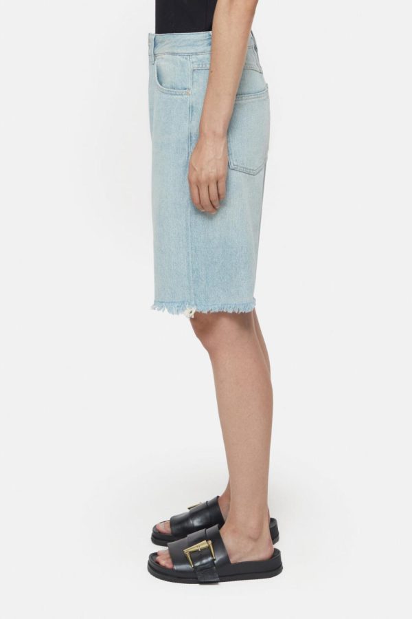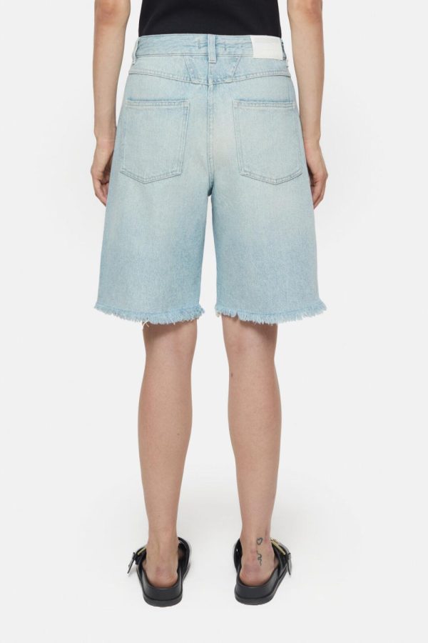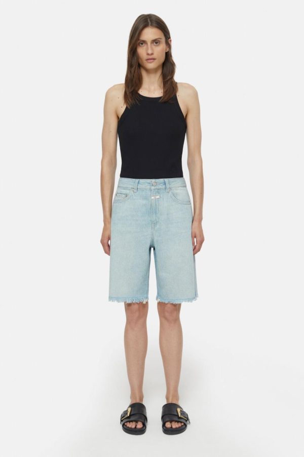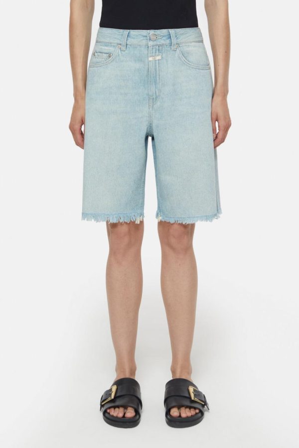 Shorts im 5-Pocket-Stil aus mittelschwerem italienischem Denim (10.5 oz.) mit deutlicher Struktur und weichem Griff – aus recycelter Baumwolle und Bio-Baumwolle. Mit heller Waschung, Fransensaum und veganem Patch aus Jacron – Teil unserer nachhaltigen Denim-Linie A BETTER BLUE.