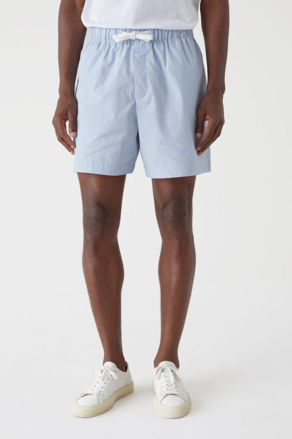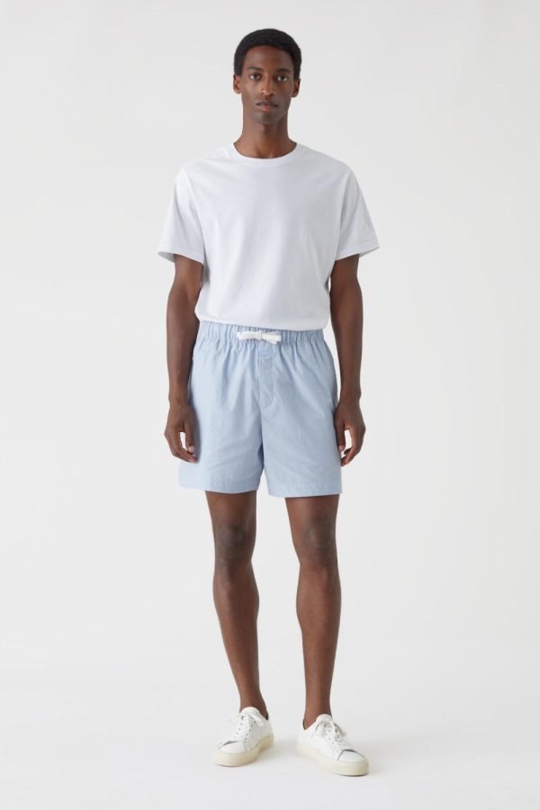 Gefertigt aus weicher und leichter Bio-Baumwollqualität: Shorts im Loose Fit mit Closed-exklusivem Streifenmuster, Tunnelzug im Stretchbund, seitlichen Eingrifftaschen und augfesetzter Gesäßtasche. Zu 100 Prozent in Portugal gefertigt.