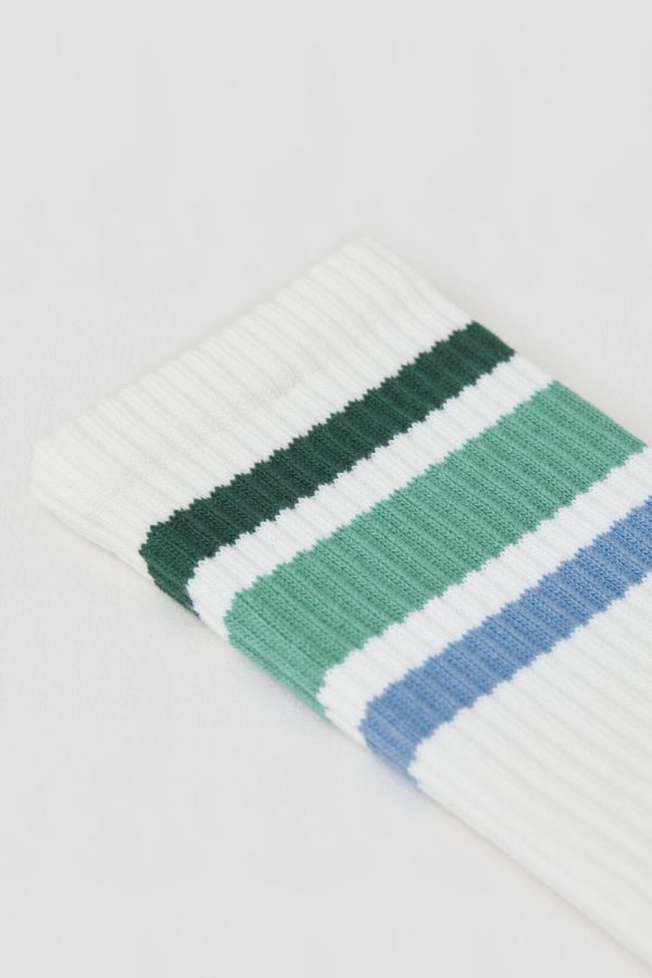 Sportlicher Style mit Kontrast-Details: In Portugal gefertigte Socken aus einem Mix aus Bio-Baumwolle, recycelten Fasern und Elasthan. Mit geripptem Schaft.