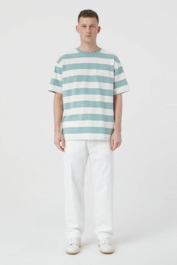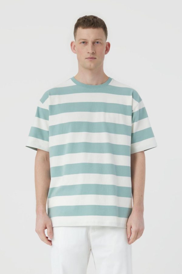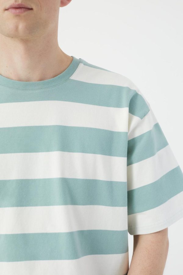 Hergestellt aus weicher, kompakter Baumwollqualität mit leichtem Stretch-Anteil: Basic T-Shirt mit breiten Streifen. Mit Rundhalsausschnitt und geradem Ärmel- und Saumabschluss.