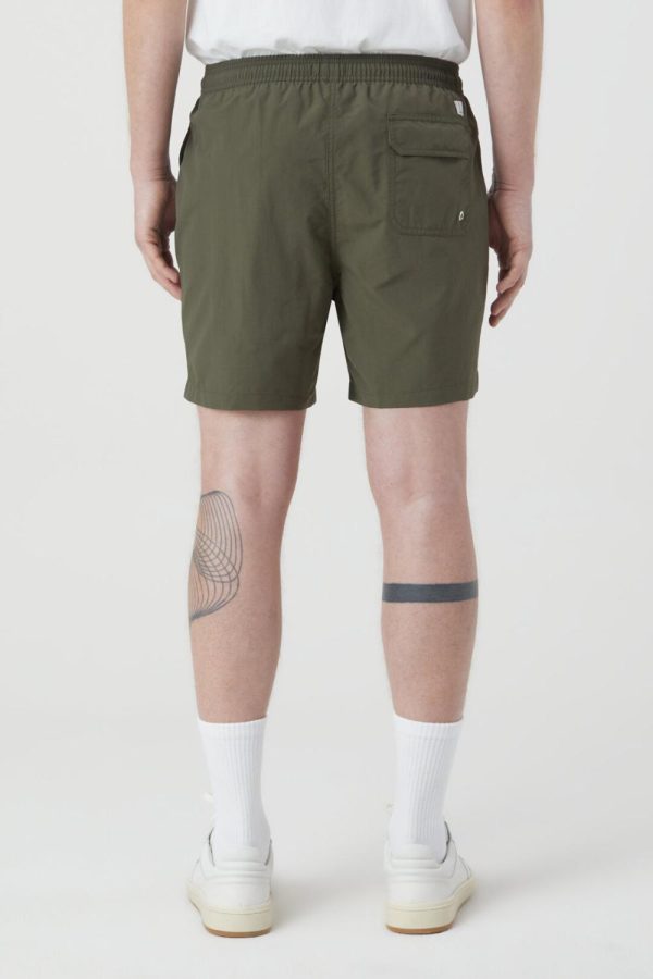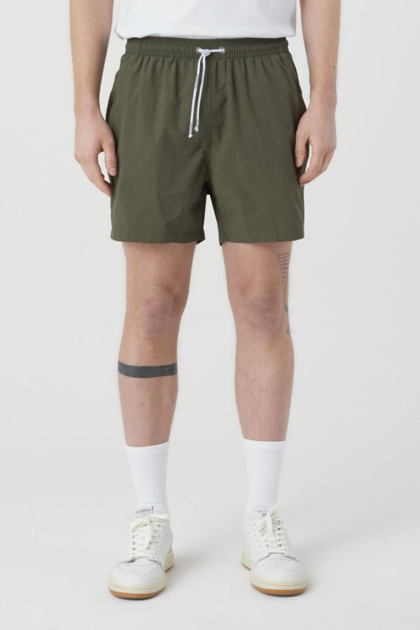 Swim Shorts aus unifarbenem Webstoff mit schnelltrocknenden Eigenschaften. Stretchbund mit Tunnelzug und Closed-Logo-Band, seitliche Eingrifftaschen und Klettverschlusstasche hinten. Mit Mesh gefüttert.