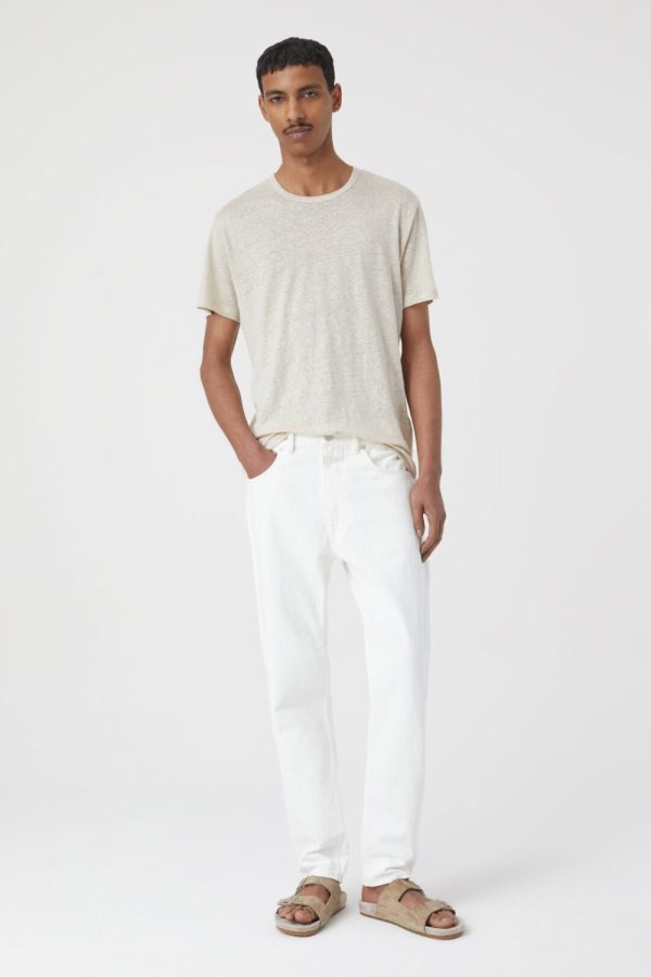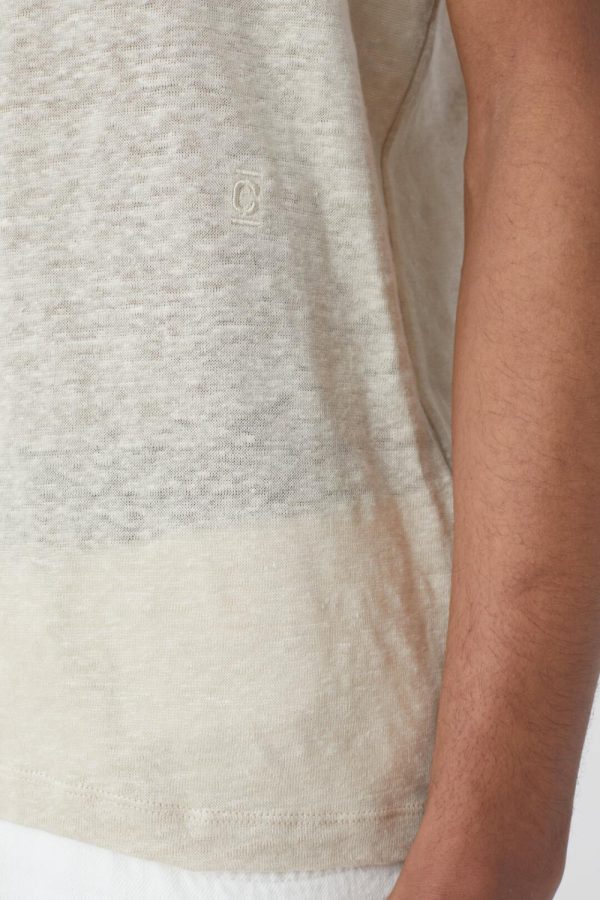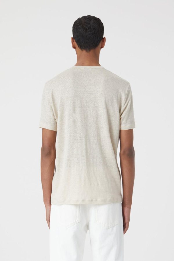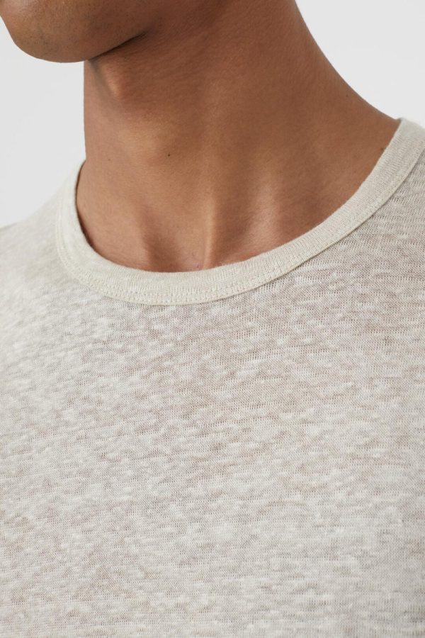 T-Shirt aus Leinen mit leicht strukturierter Oberfläche. Rundhalsausschnitt, leicht überschnittene Schulter und gerader Saumabschluss.
