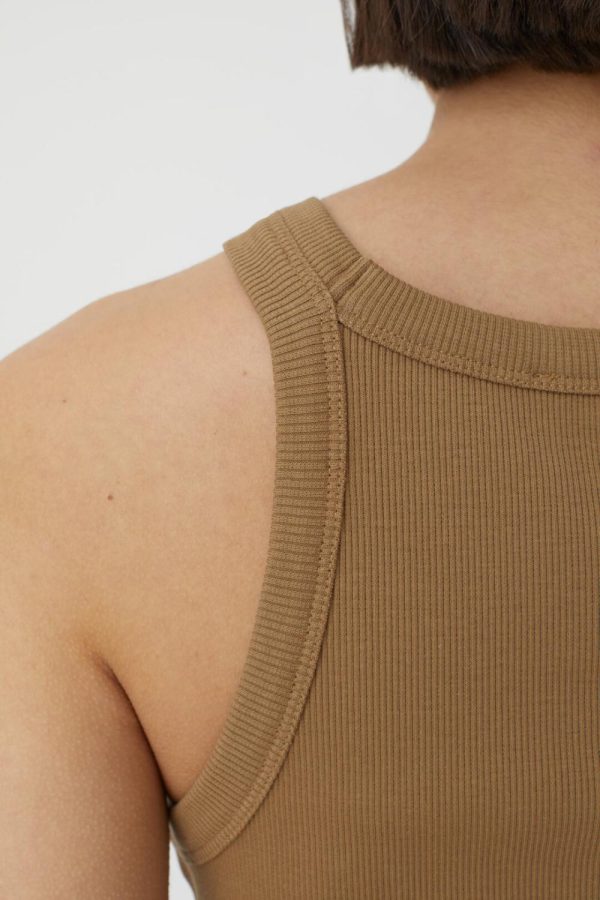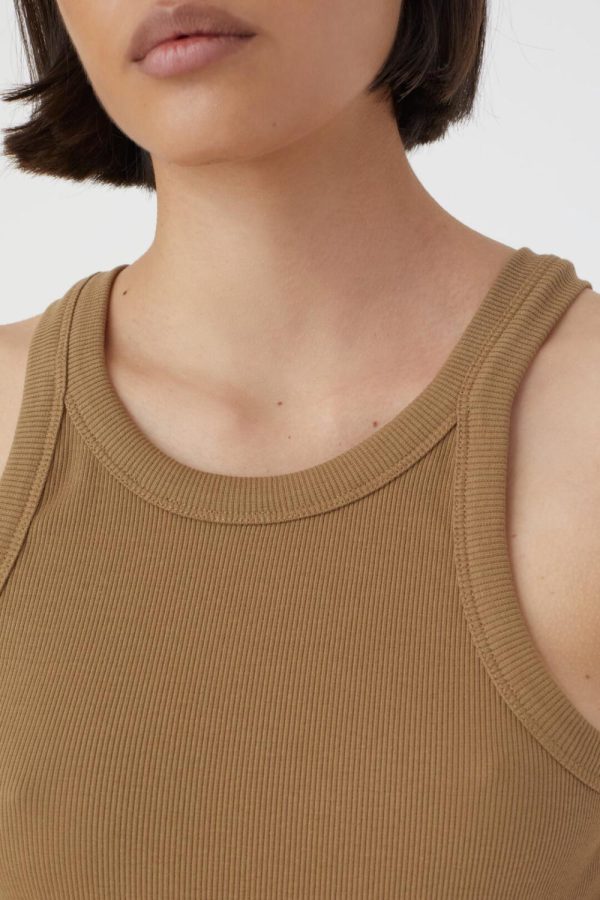 Tanktop im Slim Fit aus Rippjersey, hergestellt aus Bio-Baumwolle mit Stretch-Anteil. Mit Rundhalsausschnitt und geradem Saumabschluss.