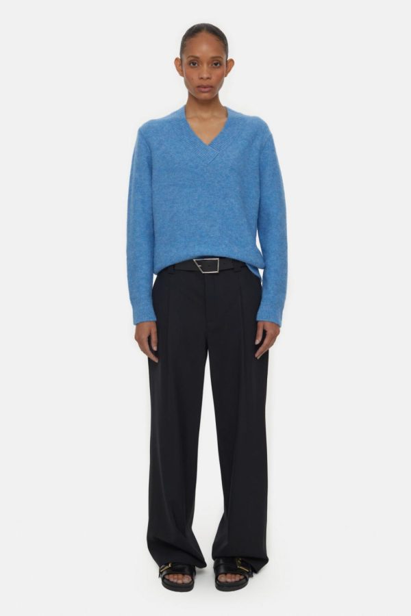 Im Regular Fit aus weichem italienischem Alpaka-Mix-Garn im mittelschweren Strick (7 gg): V-Pullover mit linker Warenseite außen und gerippten Büdchen.