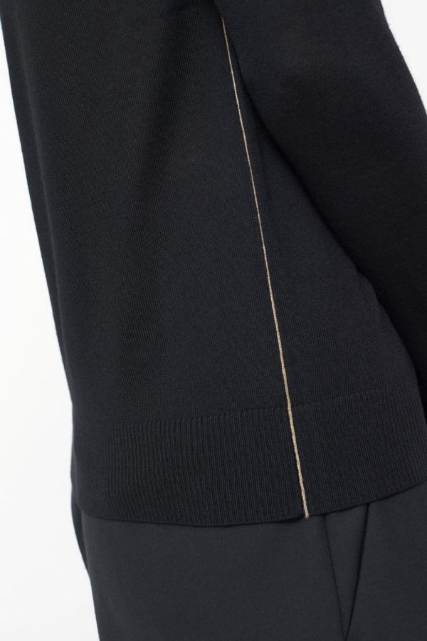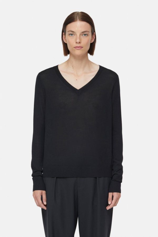 Aus reiner und sehr weicher Bio-Merinowolle im Feinstrick (16 gg) – diese stammt von Betrieben, die in Bezug auf Tierhaltung, Umwelt, Arbeitsbedingungen und Verarbeitung nach nachhaltigen Kriterien handeln, die regelmäßig kontrolliert werden: V-Pullover mit feinen Kontrast-Streifen an den Seiten.