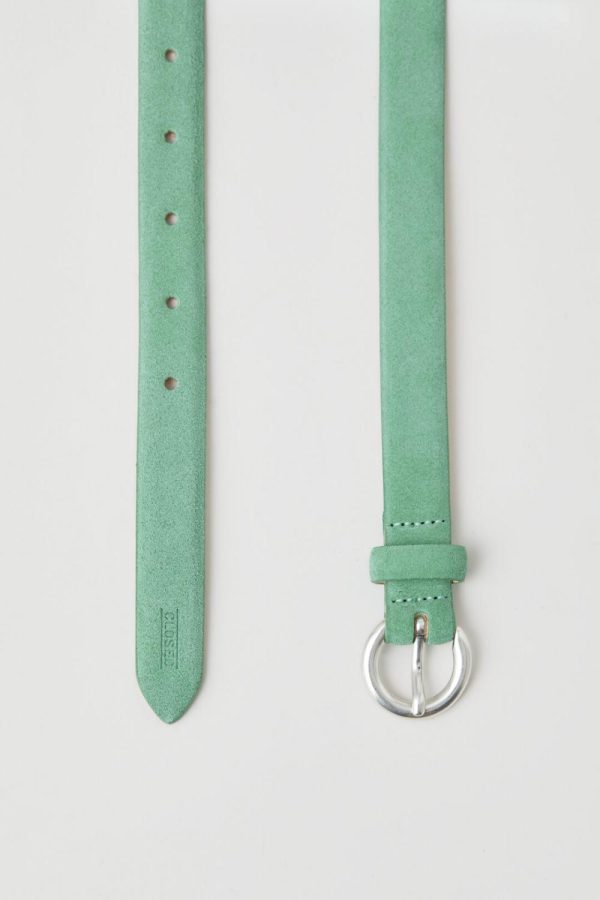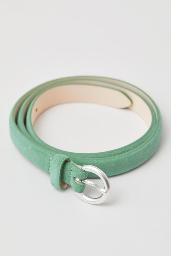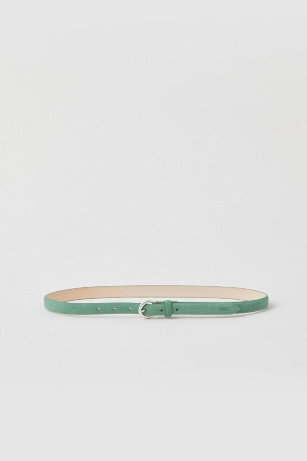 Gefertigt aus weichem italienischem Veloursleder: Schmaler Gürtel mit abgerundeten Kanten und runder Dornschließe aus Metall. Hergestellt im Traditionsbetrieb Cinturificio G&G in Italien.