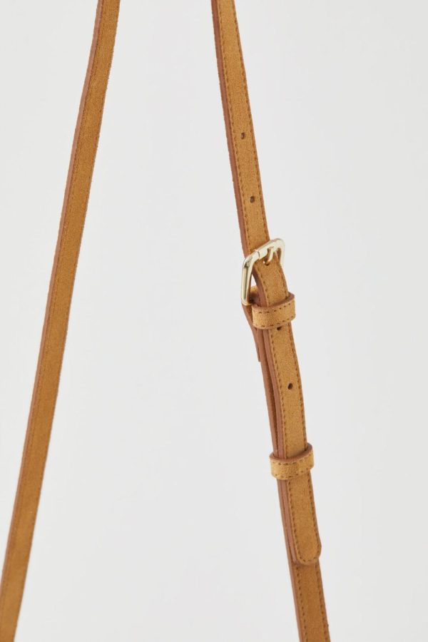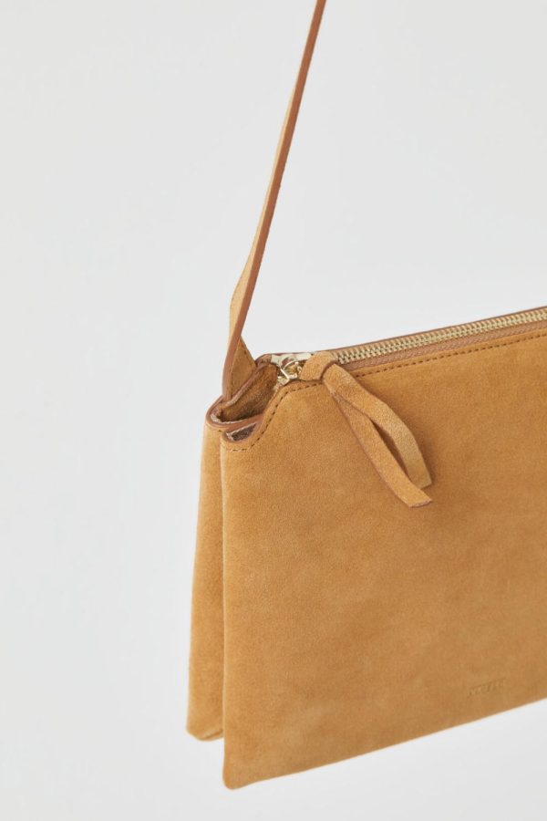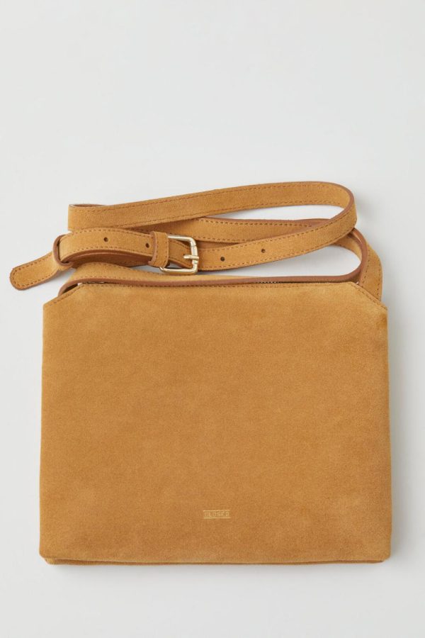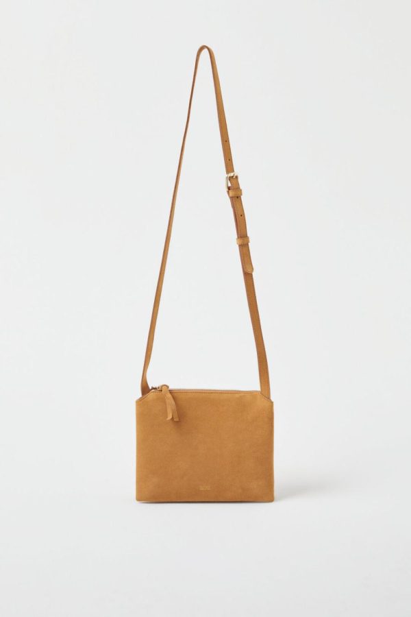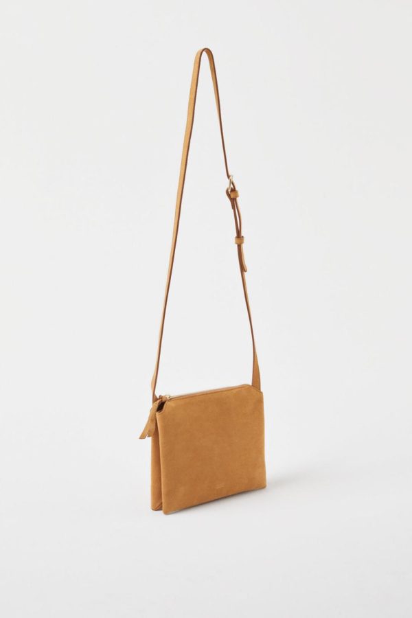 Aus weichem Veloursleder, gefertigt bei unseren Lederspezialist:innen der Firma Daro’s in Portugal: Tasche mit zwei großen Fächern, einem Mittelfach, längenverstellbarem Riemen, Closed-Prägung und Twillfutter.