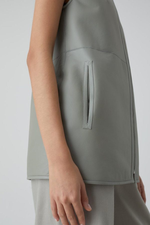 Aus sehr weichem Lammfell mit besonders weicher Haptik sowie mit Lederseite in Matt-Optik, gefertigt bei der Firma Otto, unseren Spezialist:innen für Lederbekleidung: Weste zum Wenden im Slim Fit mit Rundhalsausschnitt, Metallreißverschluss und Eingrifftaschen.