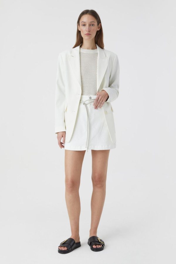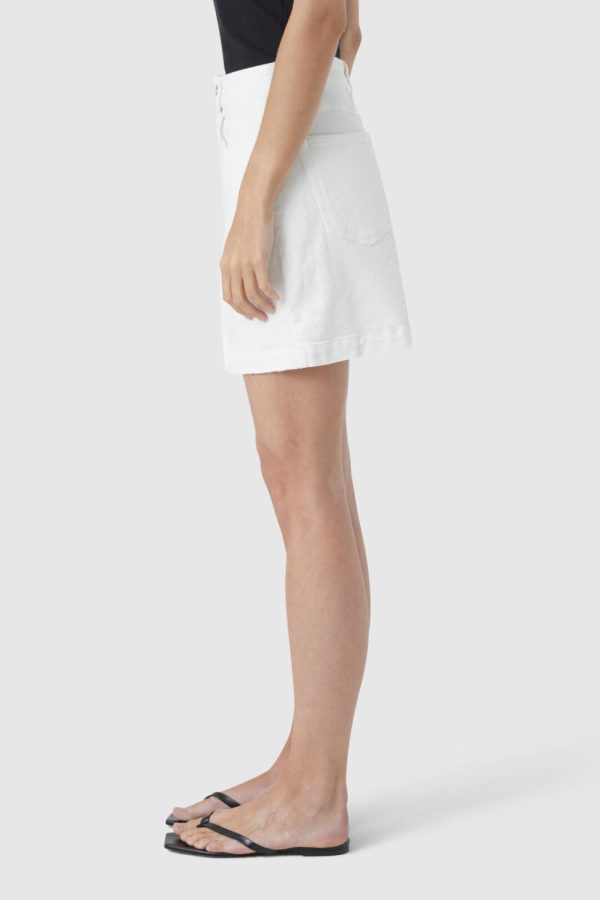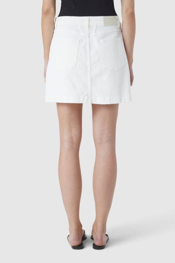 Mini im 5-Pocket-Style aus leichtem weißem Comfort Stretch Denim mit deutlicher Struktur und Fransensaum. Slim Fit mit Knopf, Zipper und Fly Label. Zu 100 Prozent in Italien gefertigt.