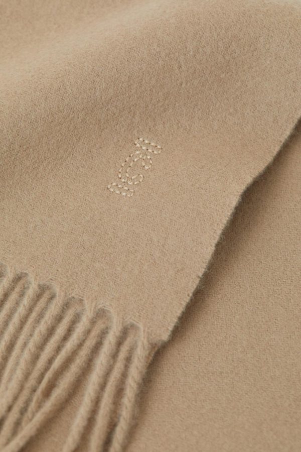 Gefertigt bei Pooltrend in Italien: Wollschal aus weicher und reiner Wolle mit Kordeln an den Enden und gesticktem Logo in toniger Optik.
